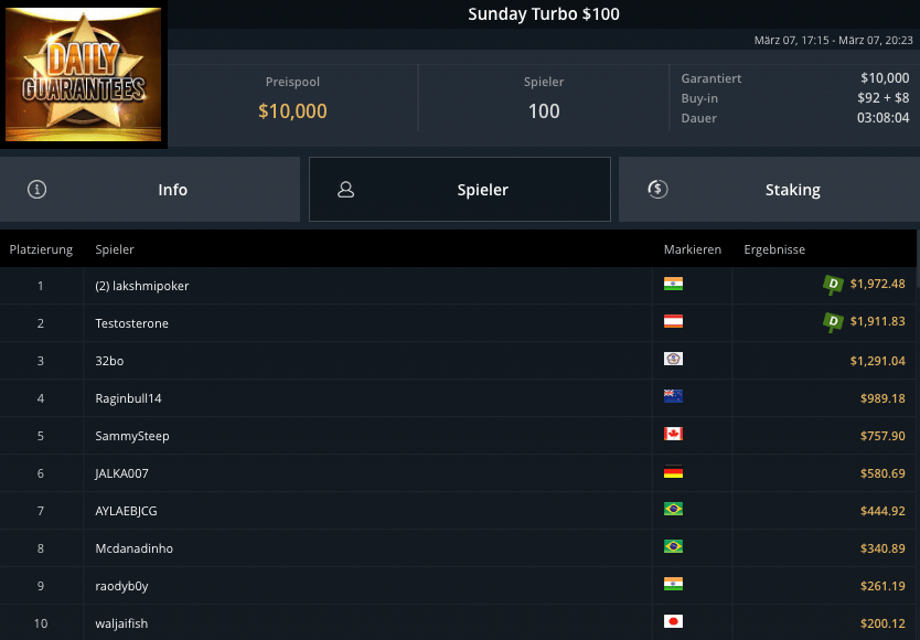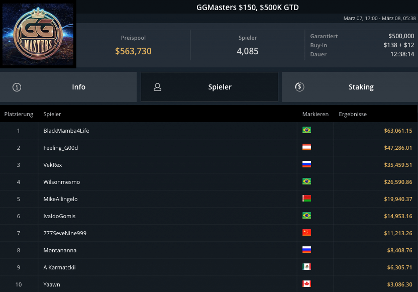 Weitere Turniere auf GGPoker am 07.03.2021: