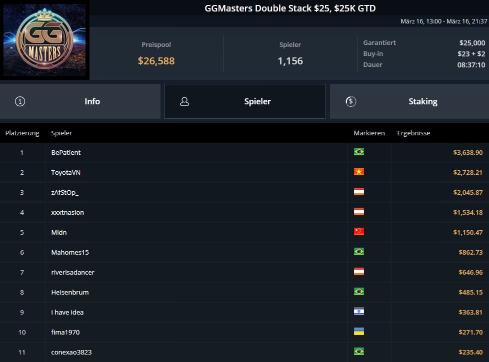 Platz 3 – $25 GGMasters Double Stack – „zAfSt0p“ (AUT) – $2.045