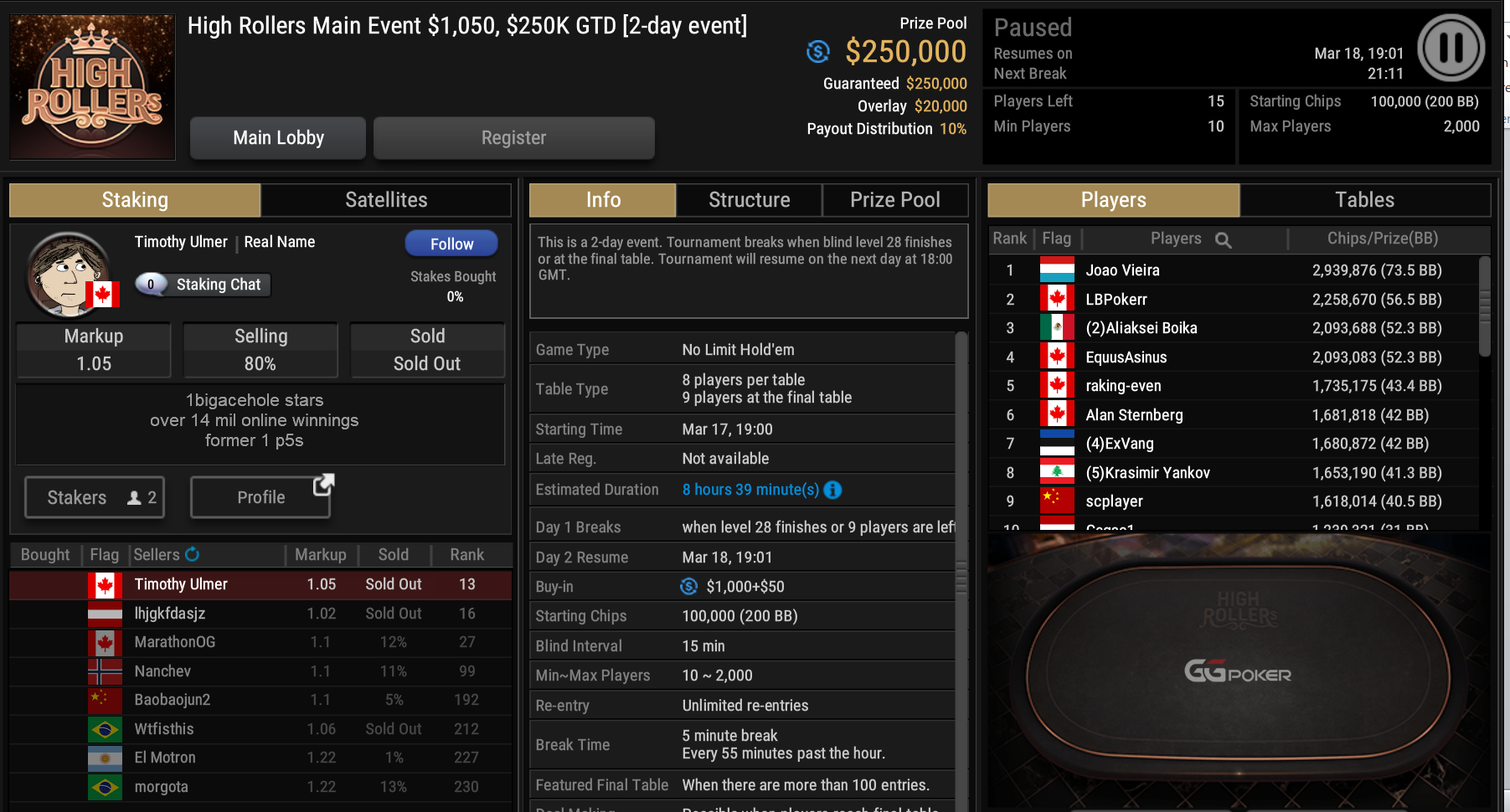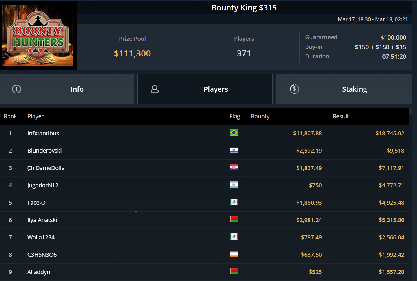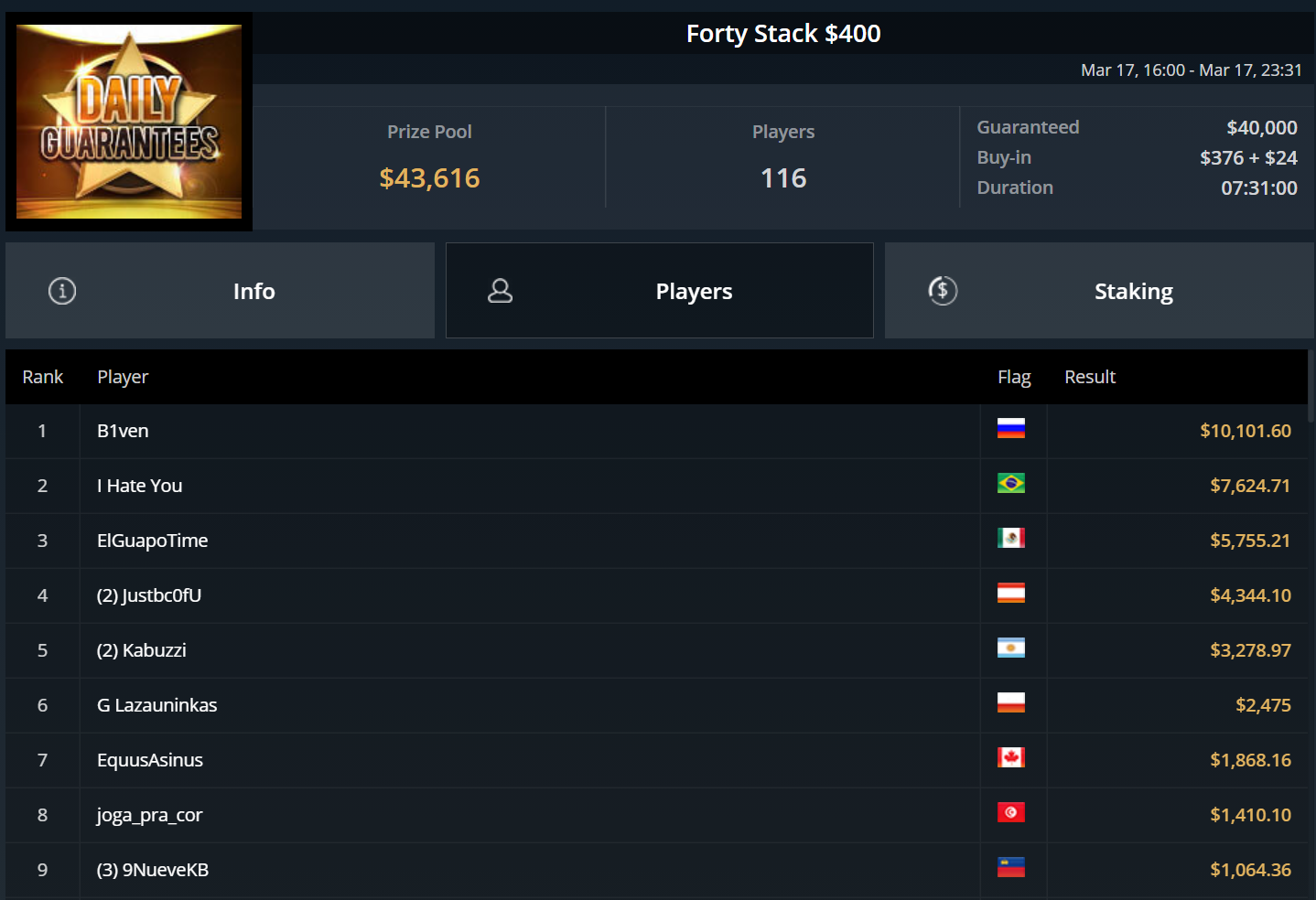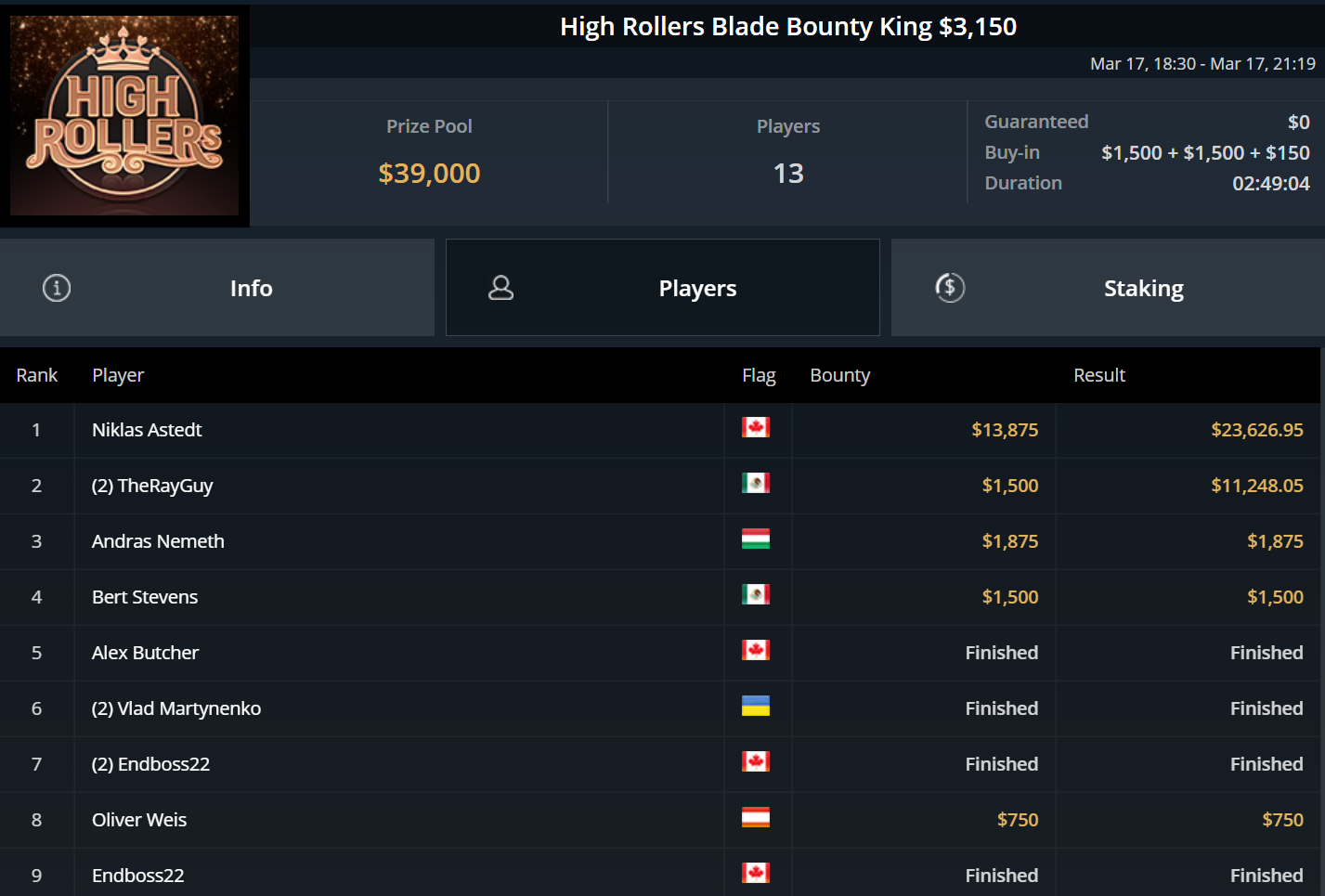 Größter Gewinner des Tages war „DaiMing141319“, der sich den Sieg beim zweitägig angesetzten Super Tuesday sicherte. Er besiegte im Heads-Up Juan Dominguez und kassierte über $55.000.