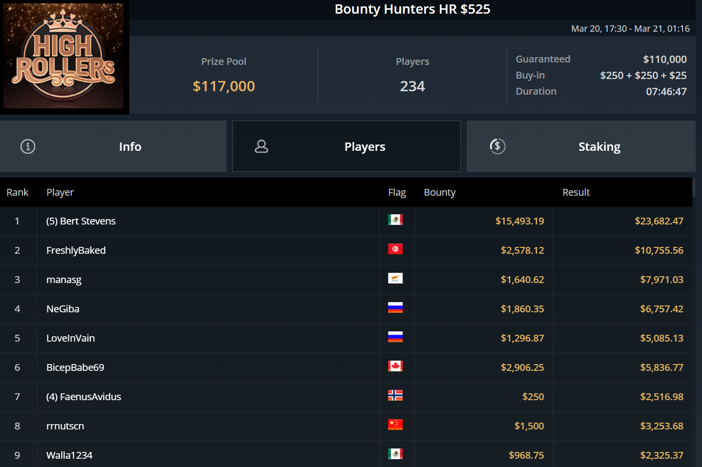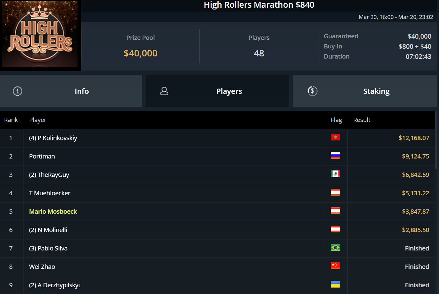 Rang 4 und 5 gab es für Thomas Mühlöcker und Mario Mosböck beim beliebten $840 High Rollers Marathon.
