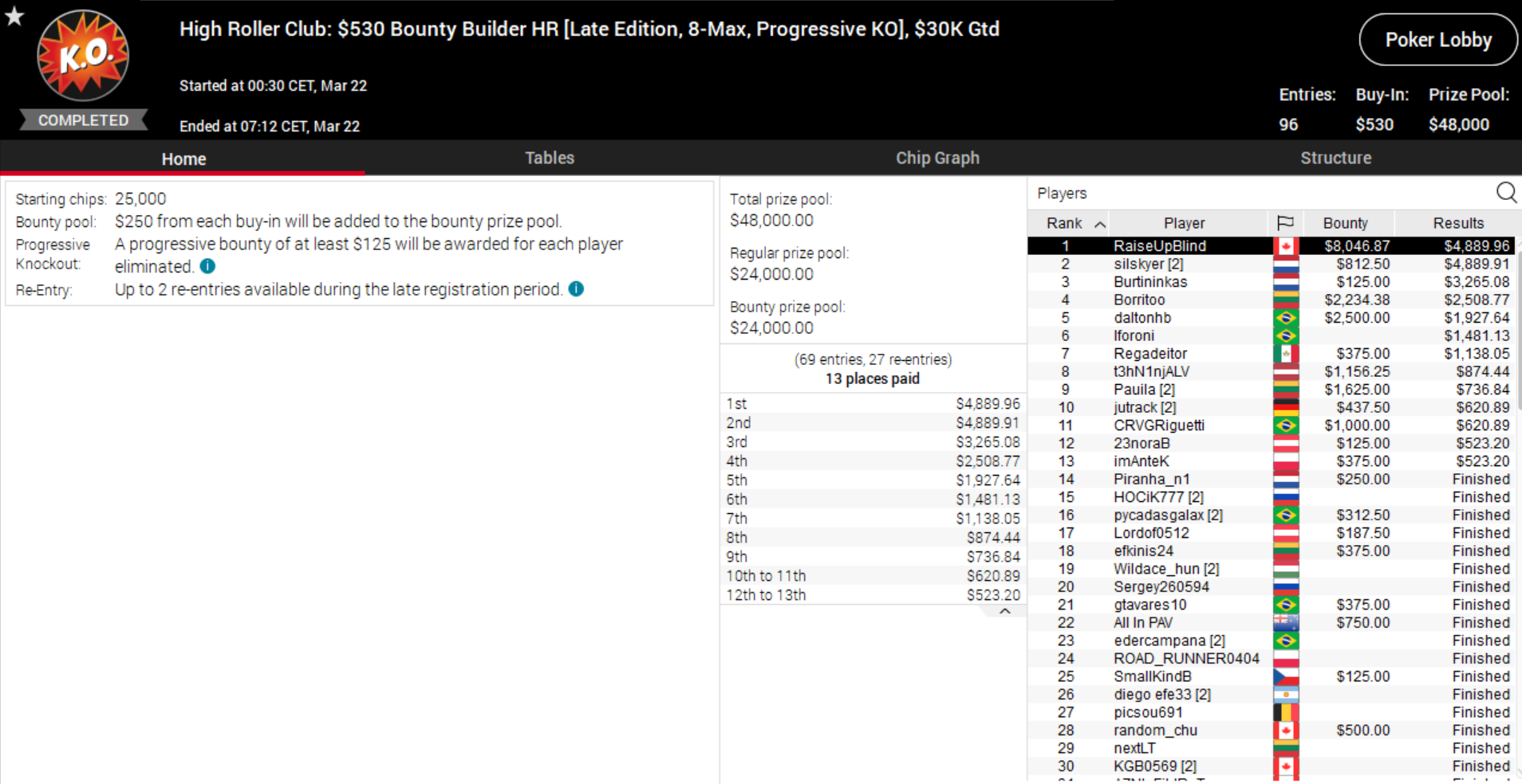1.523 Entrys sorgten beim Bounty Builder für einen Preisgeldtopf von $761.500, von denen allein knapp $50.000 plus Bountys an den Sieger gehen.