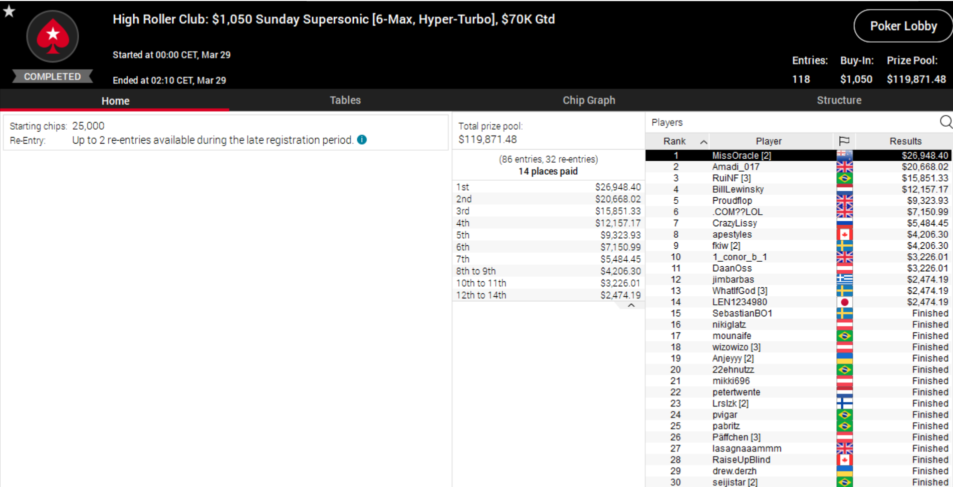 Das herausragende Ergebnis holte dabei Max „mikki696“ Lehmanski, der sich beim $530 Omania High Roller durchsetzen konnte.
