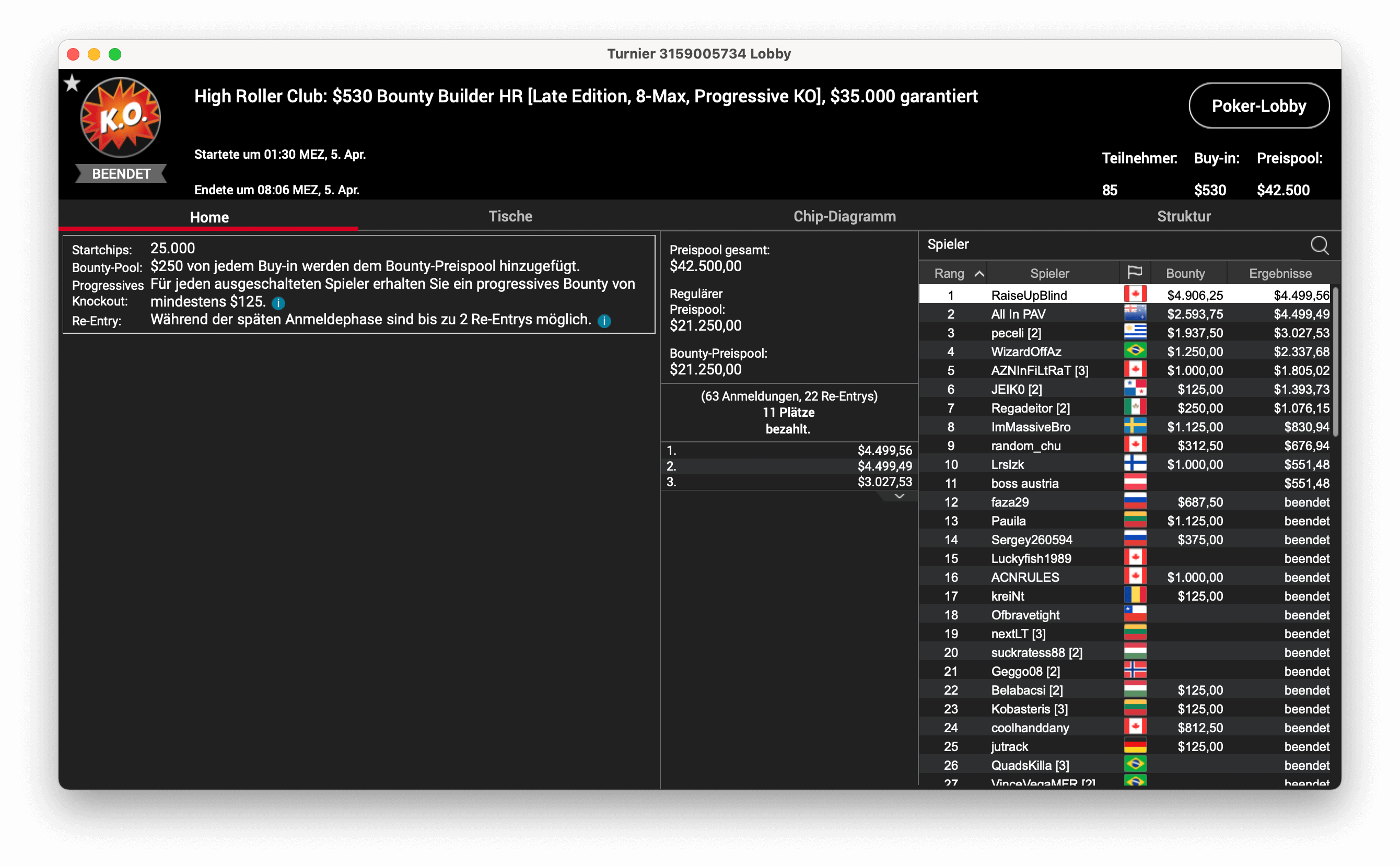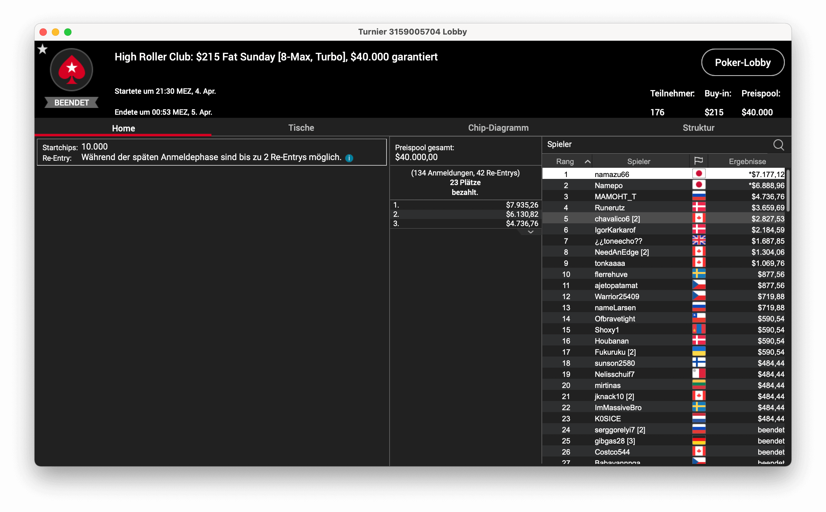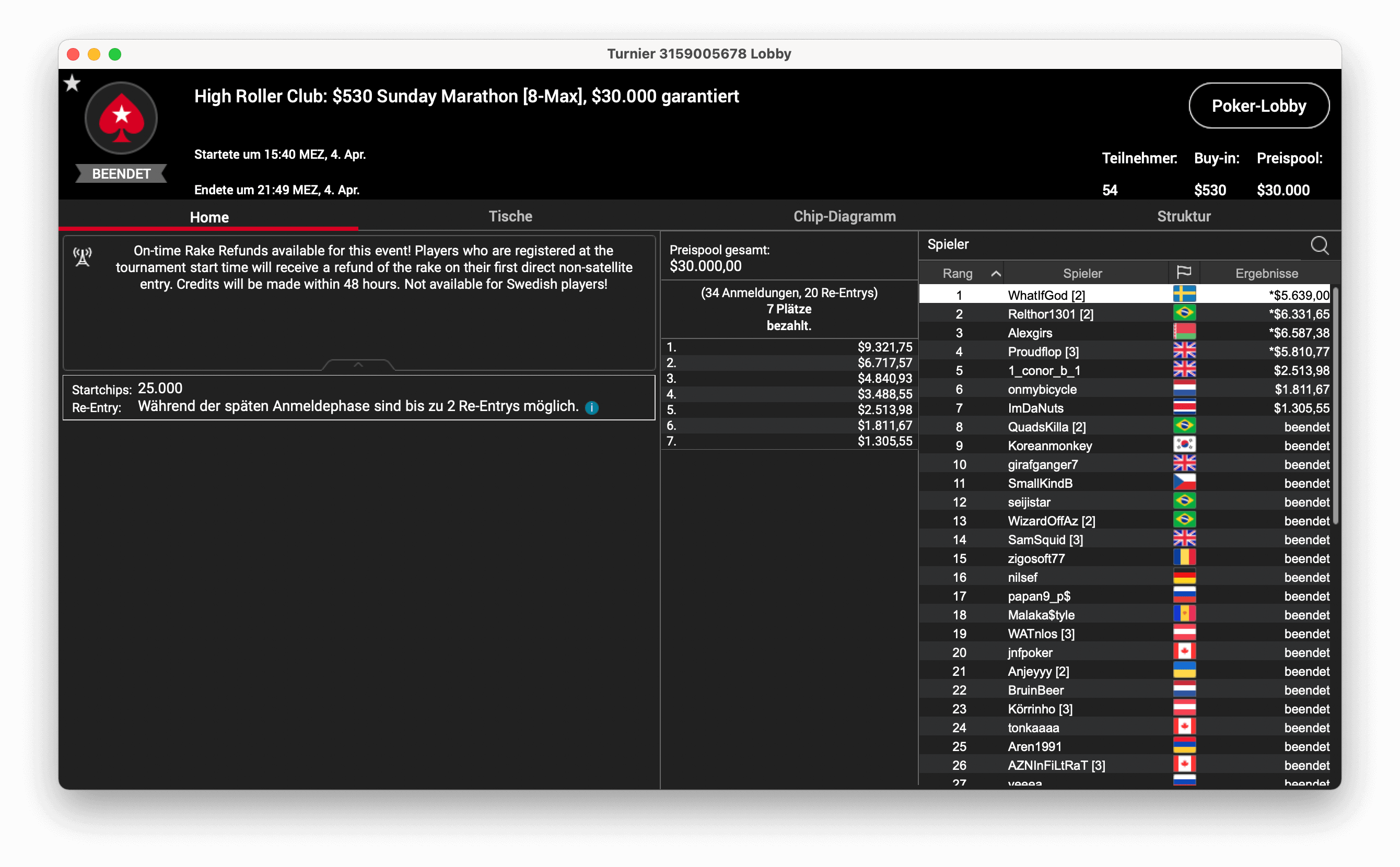 Weitere Ergebnisse im High Roller Club am 04.04.2021: