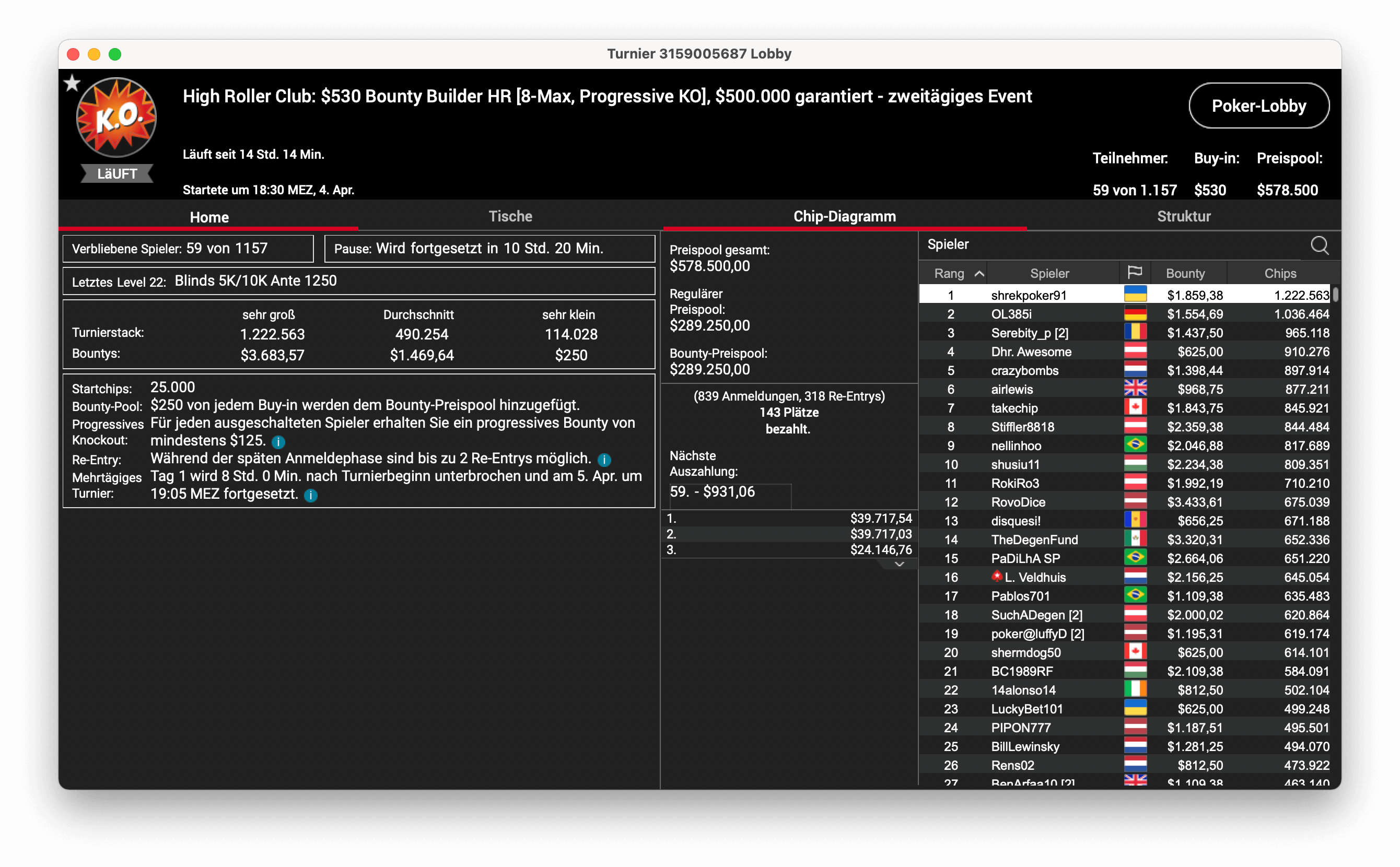 Auf den Sieger warten $39.717 + eine ähnliche Menge an Bounties.