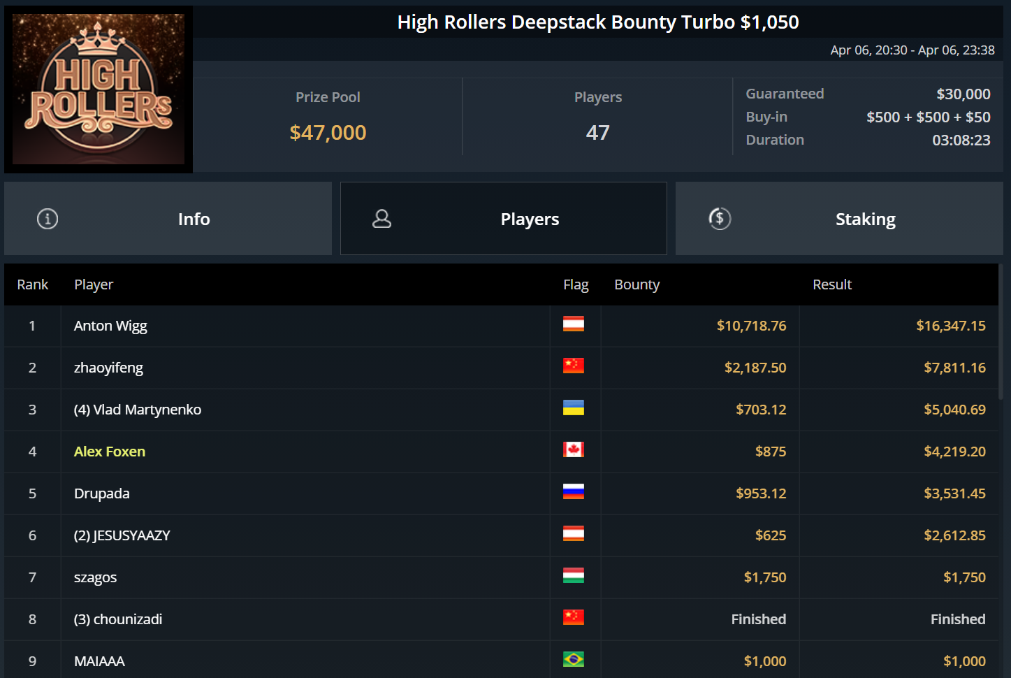 Einige Top-Platzierungen für DACH-Spieler gab es aber trotzdem. Roland „gwriden“ Rokita landete beim $400 Forty Stack auf dem zweiten Platz und kassierte rund $9.500.