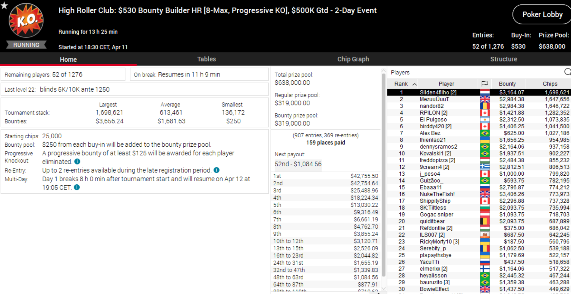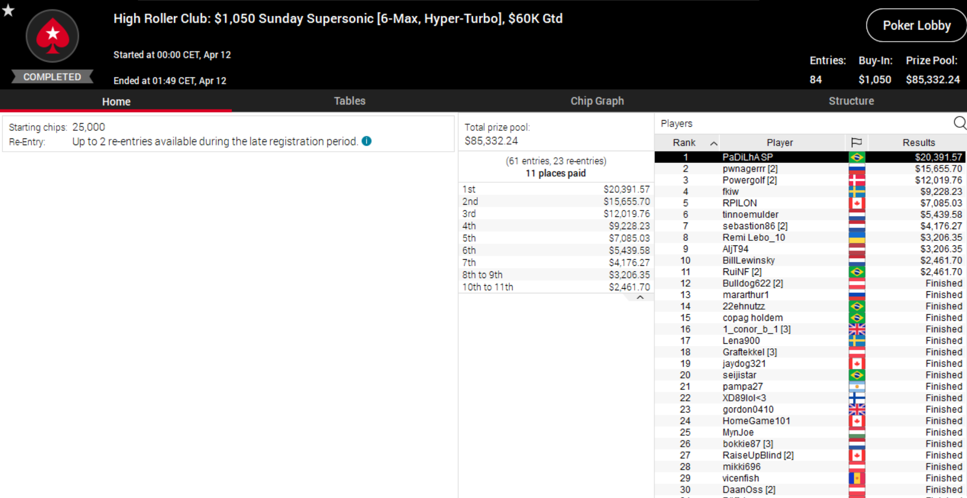 Im High Roller Club von PokerStars wurden gestern fünf Turniere ausgetragen und dabei sprang immerhin ein Sieg heraus.