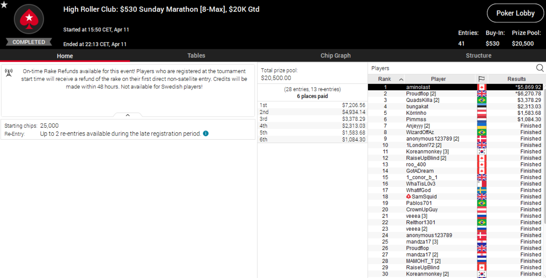 Den Sieg und knapp $6.000 holte „aminolast“ aus Kanada nach Deal mit dem Briten Jonathan „Proudflop“ Proudfoot.