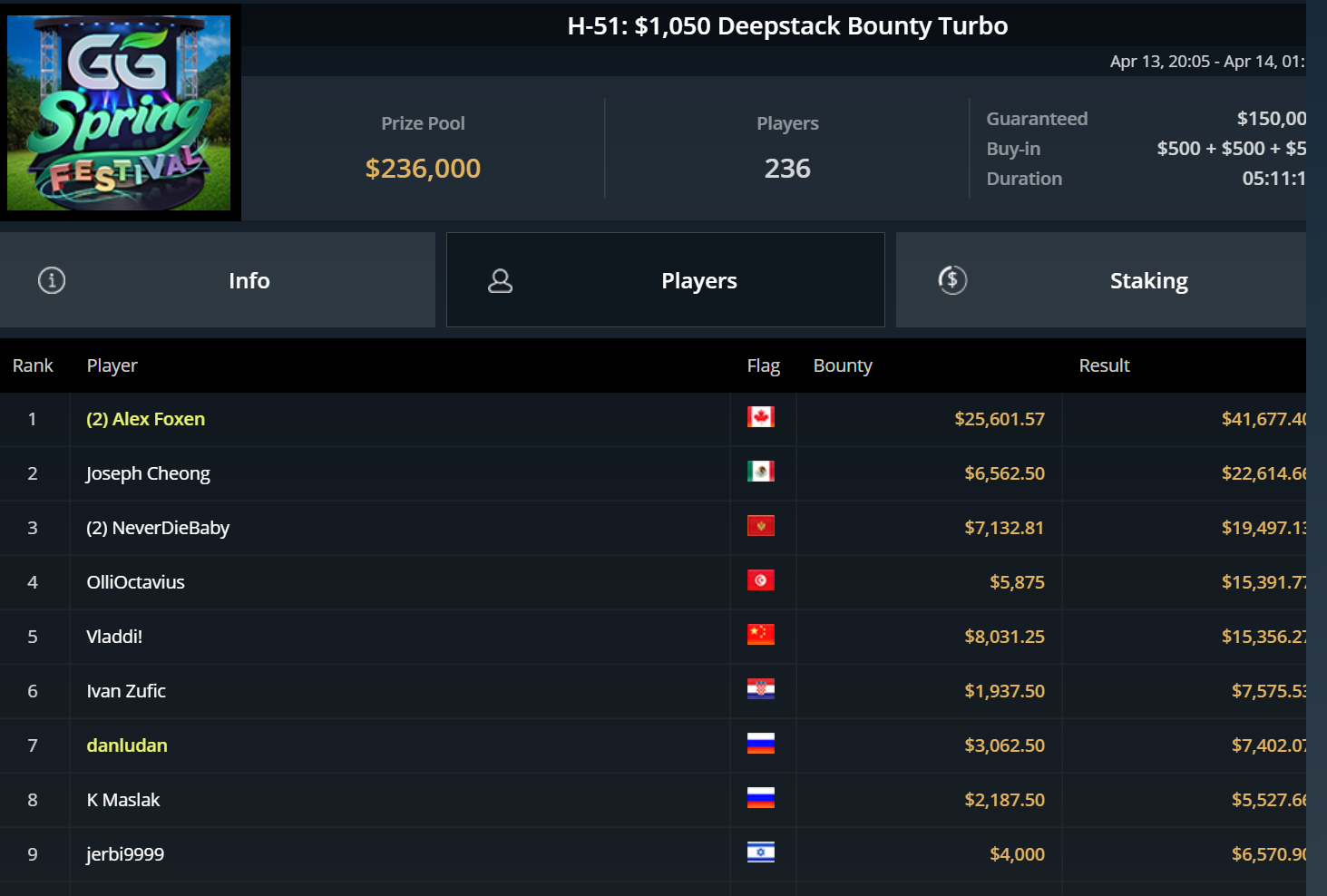 Den zweiten Sieg unter deutschsprachiger Flagge holte Stanislav „FreeZePeeDoe“ Zegal bei Event H-48, einem $525 PLO-NL Bounty.