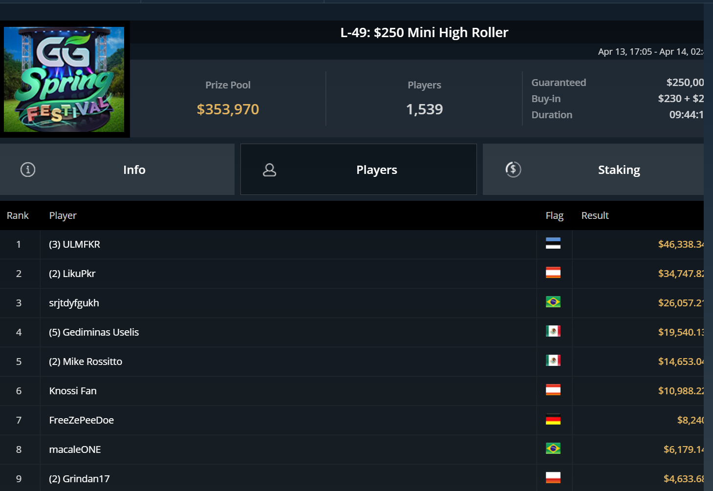Und auch für „LikuPkr“ hätte es um ein Haar zum großen Wurf gereicht. Der Mann aus Österreich landete beim $250 Mini High Roller auf Platz 2 und durfte sich über $34.000 freuen.