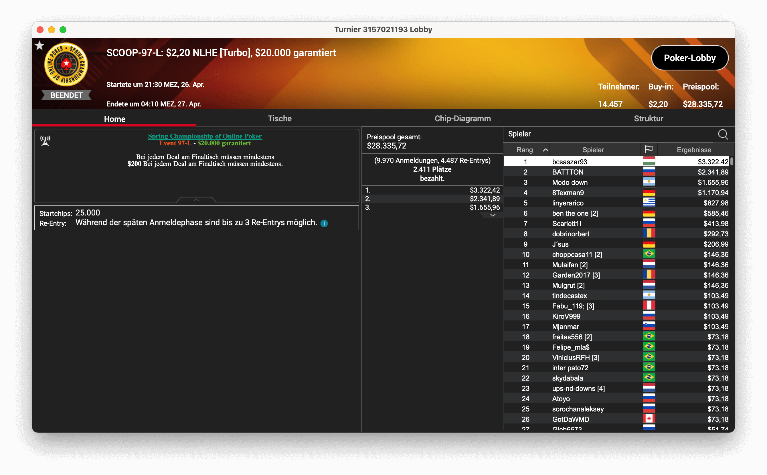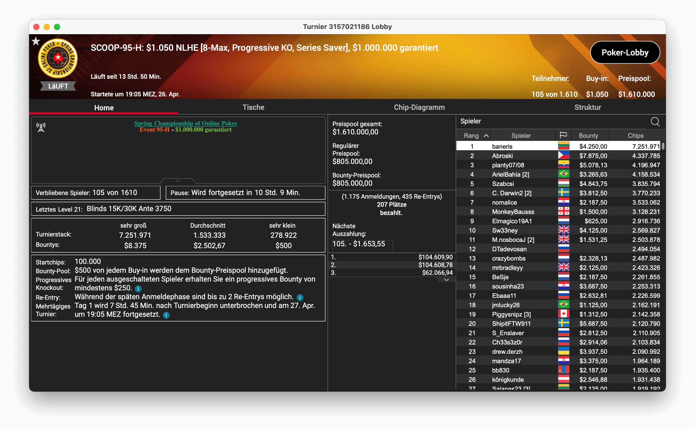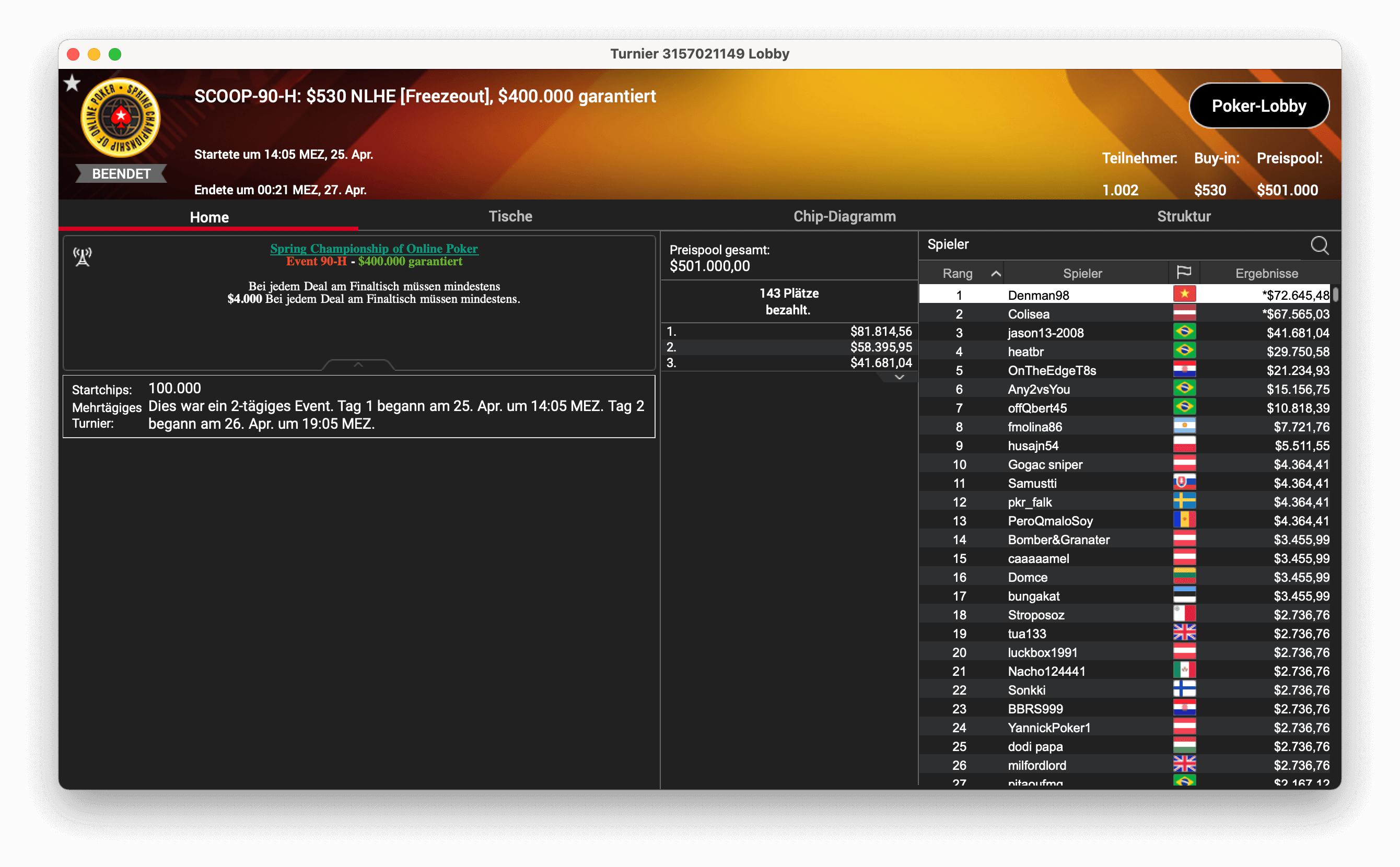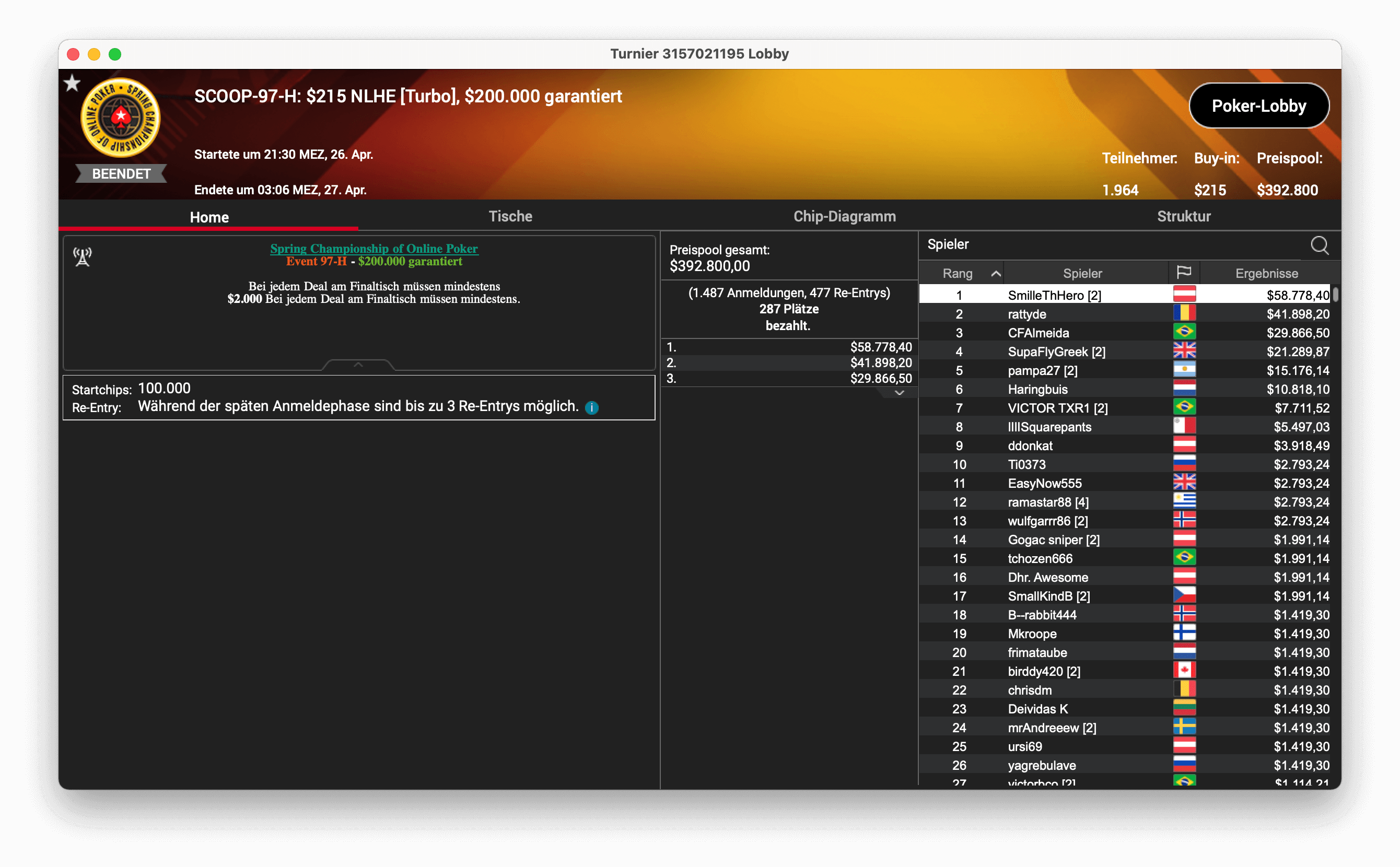Gestern gab es wieder eine Reihe von Turnieren im Rahmen der Spring Championship of Poker, kurz SCOOP, auf PokerStars – Turniere starteten, Tag 2 und Finaltage gingen über die Bühne. Mit Daniel Smiljkovic gab es auch einen erfreulichen DACH-Champion.