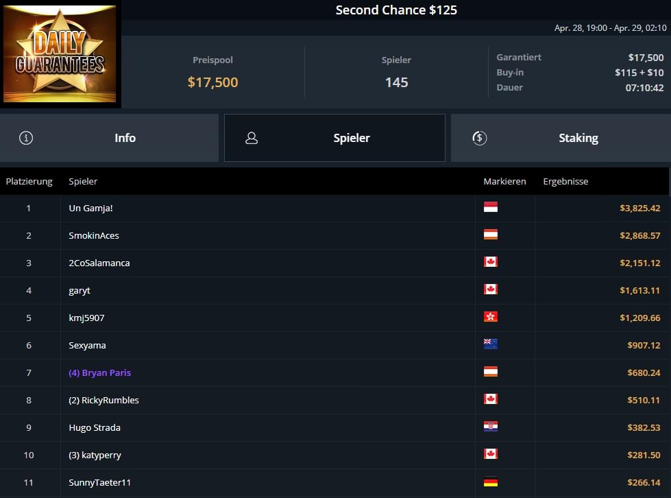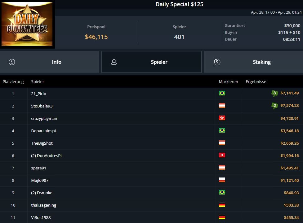 Platz 2 – $125 Daily Special – „StoBblale93“ (AUT) – $7.574 (2-Way Deal)