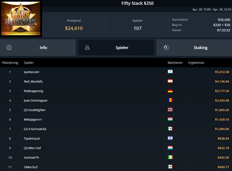 Platz 2 – $250 Fifty Stack – „Red_Mustafa“ (AUT) – $4.146
