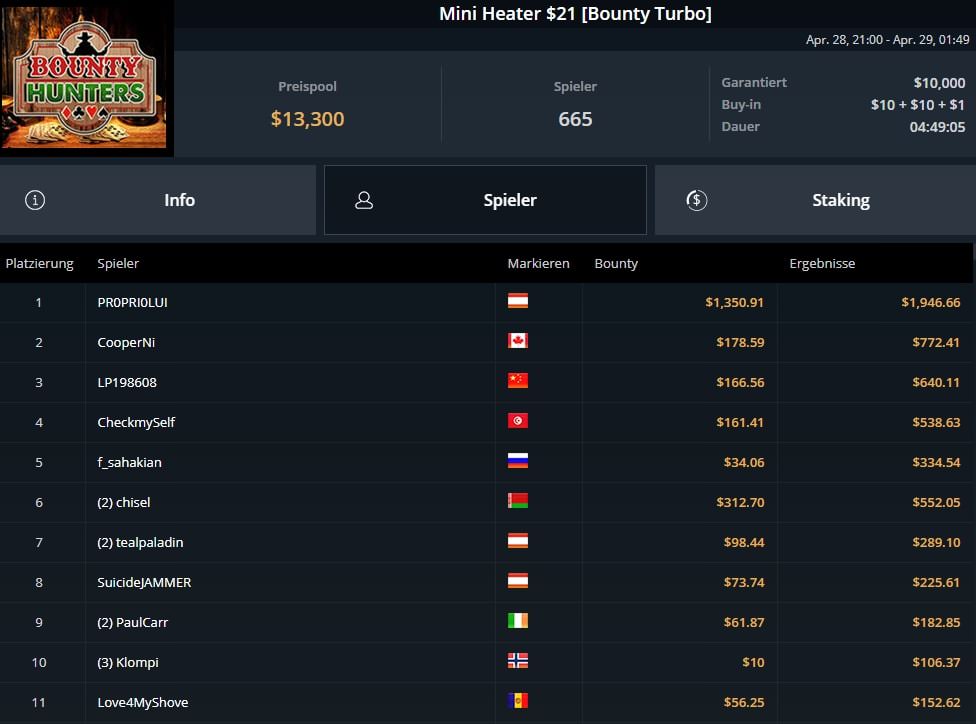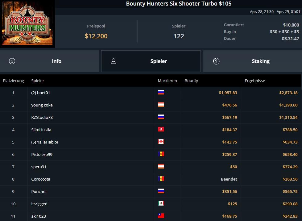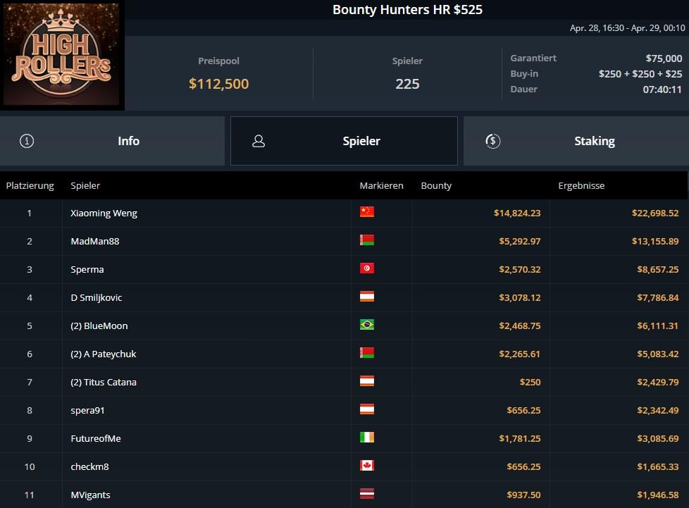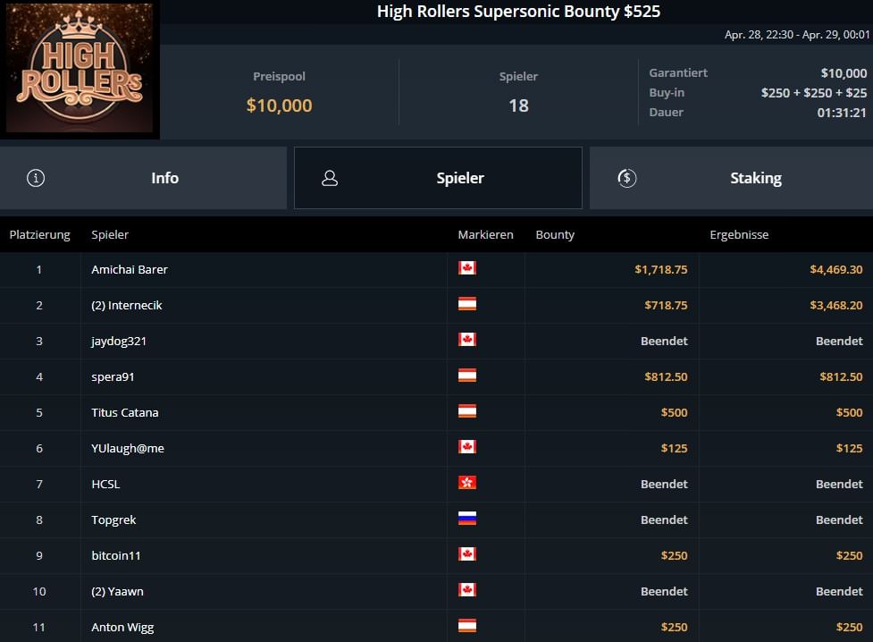 Platz 2 – $525 High Rollers Supersonic – „Internecik“ (AUT) – $3.468 inkl. $718 Bounties
