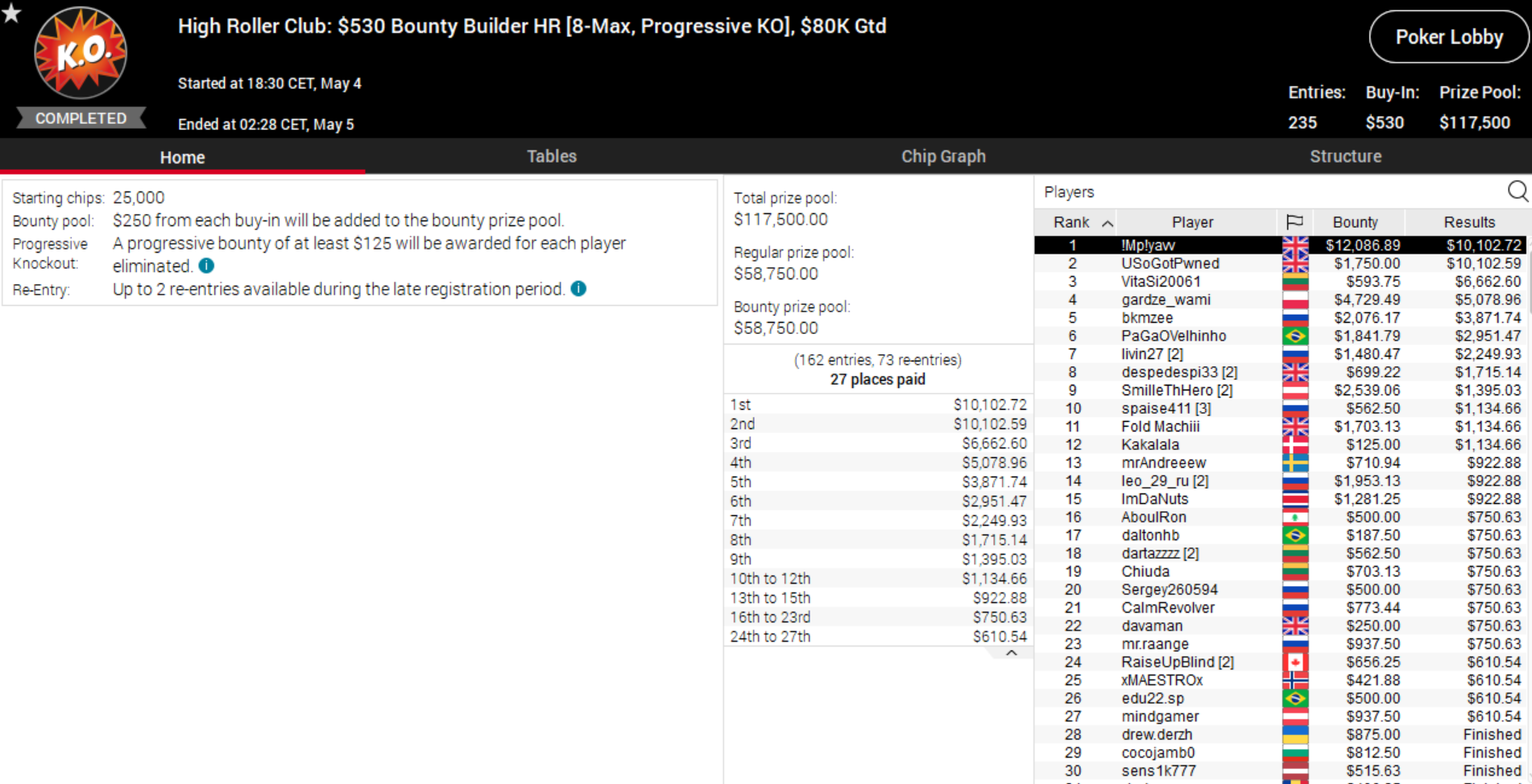 Den Sieg und die größte Preisgeldsumme des Tages sicherte sich der Brite „!Mp!yavv“.