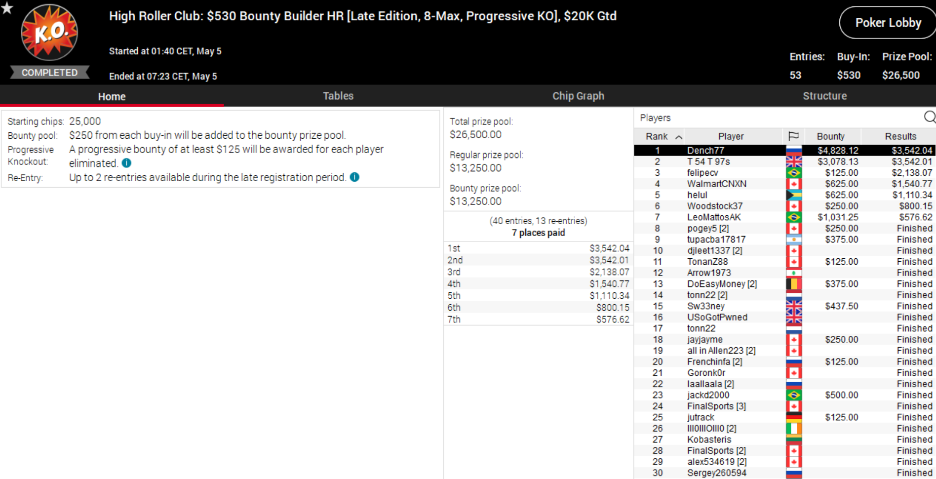 Im High Roller Club auf PokerStars sind die deutschsprachigen Spieler normal immer für einen Sieg gut, aber gestern war von ihnen wenig zu sehen.