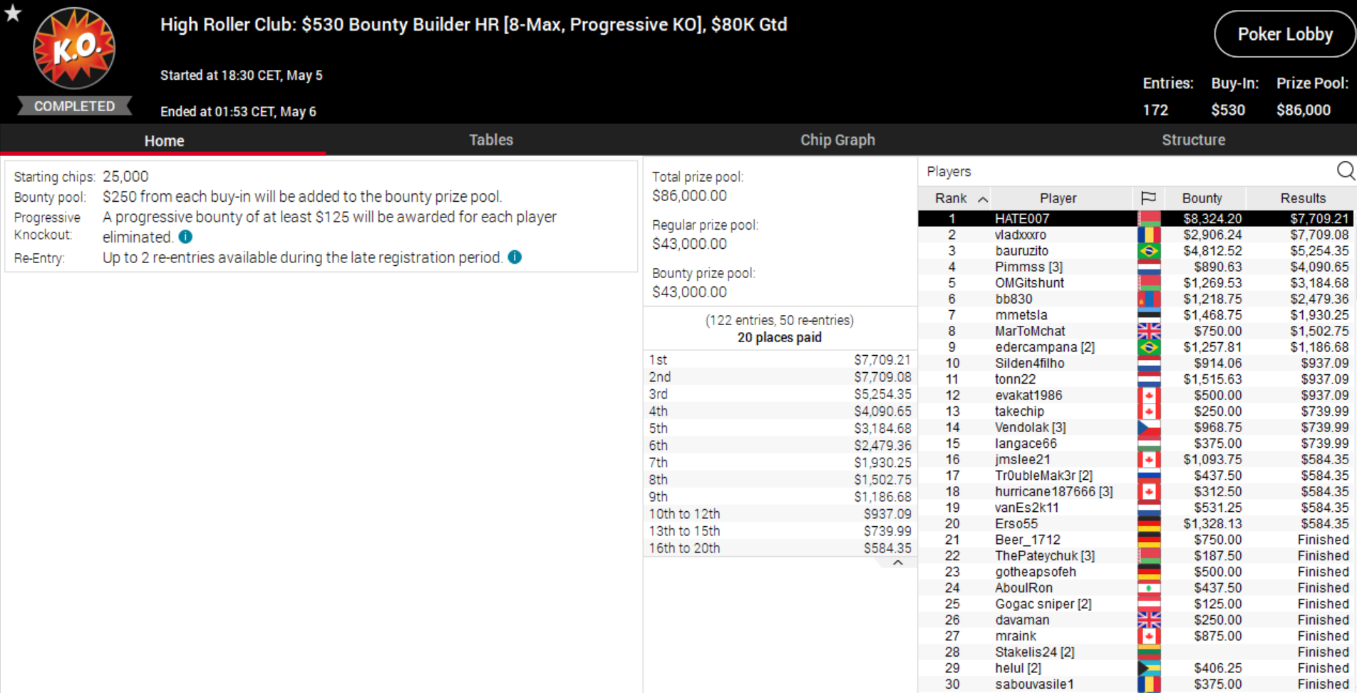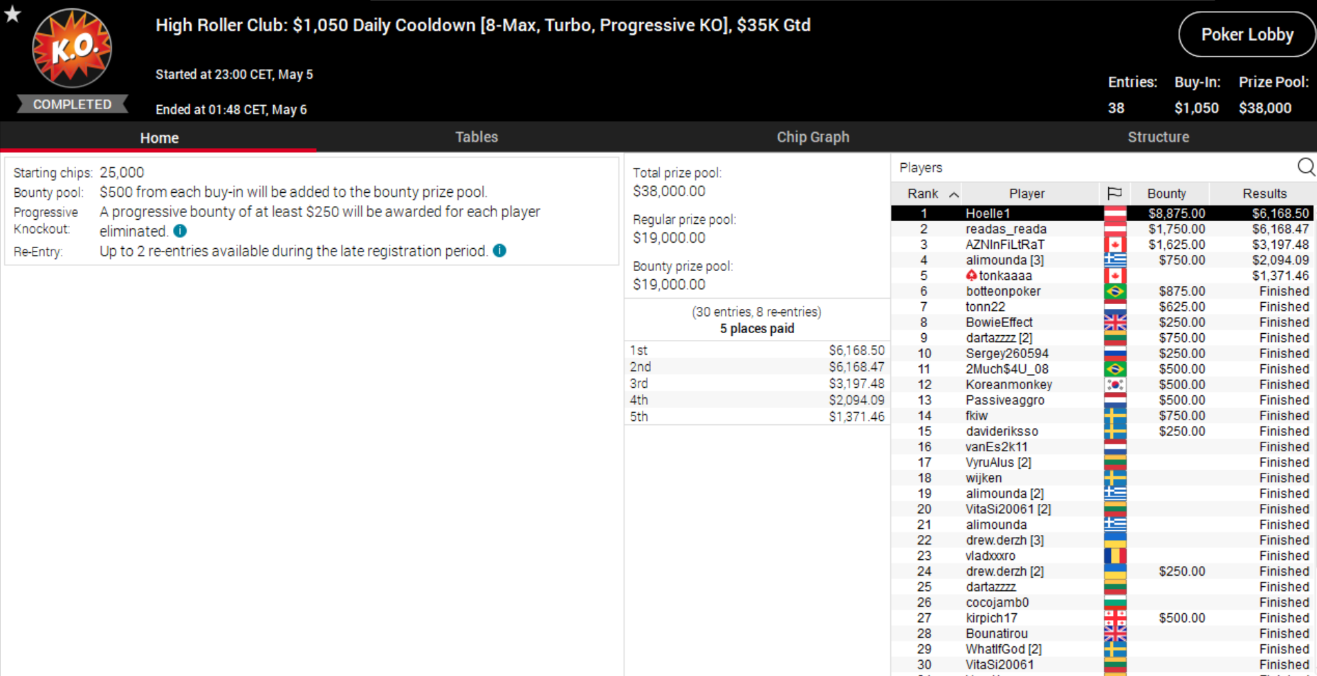 Auch Rang 2 ging an einen Spieler mit österreichischer Flagge. „readas_reada“ konnte sich über knapp $8.000 freuen.