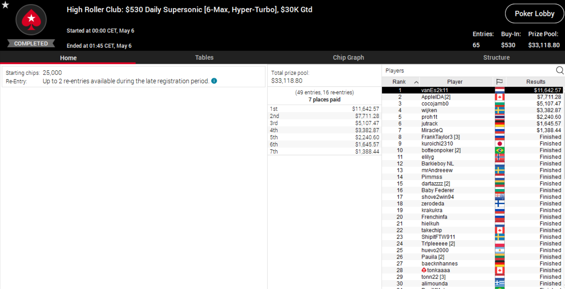 Auch Dauergast Julian „jutrack“ Track landete einen späten Cash. Er belegte beim $530 Supersonic und erhielt gut $1.600 Preisgeld.
