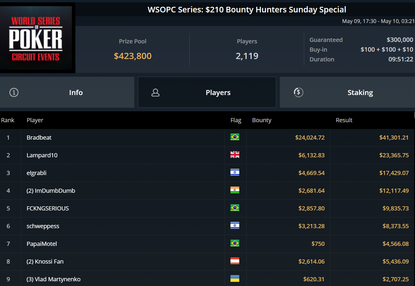 Leider hatten unsere deutschsprachigen Spieler mit der Vergabe des Sieges bei WSOPC Event 6, dem $365 GIANT No-Limit Hold’em überhaupt nichts zu tun.