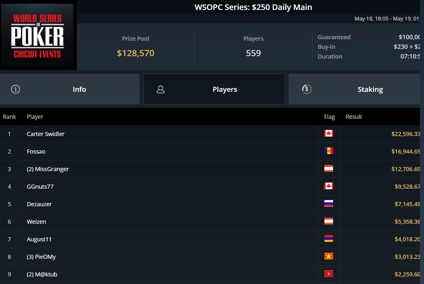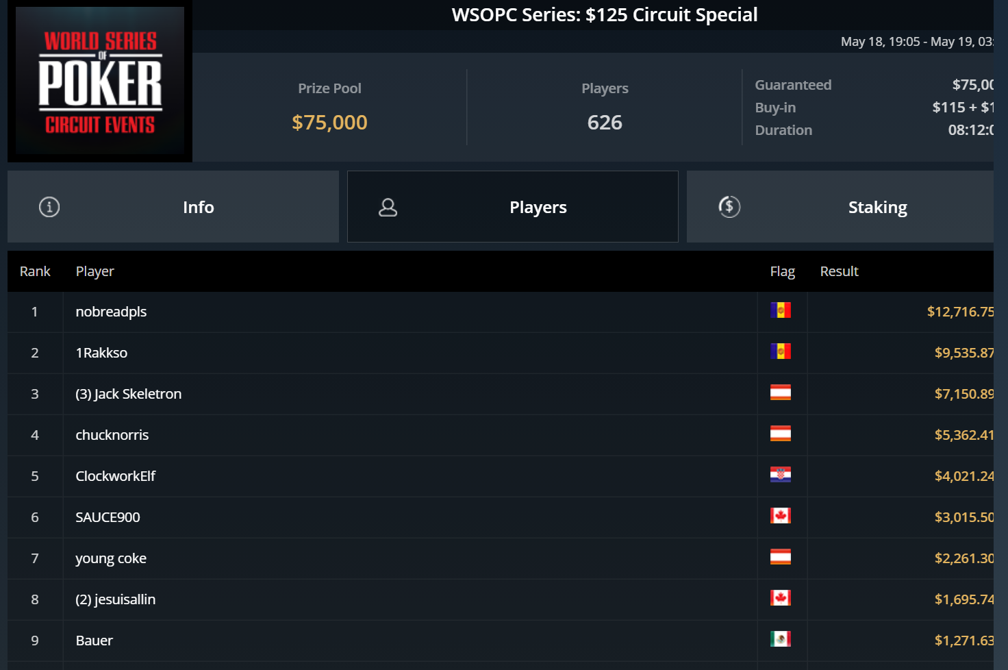 Herausragender Spieler war dabei der Amerikaner Connor Drinan, der gleich zwei Turniere gewann und dabei über $45.000 Preisgeld abräumte.