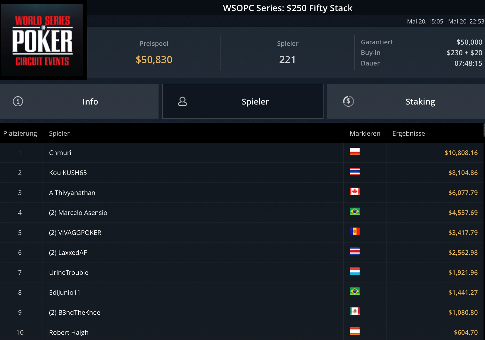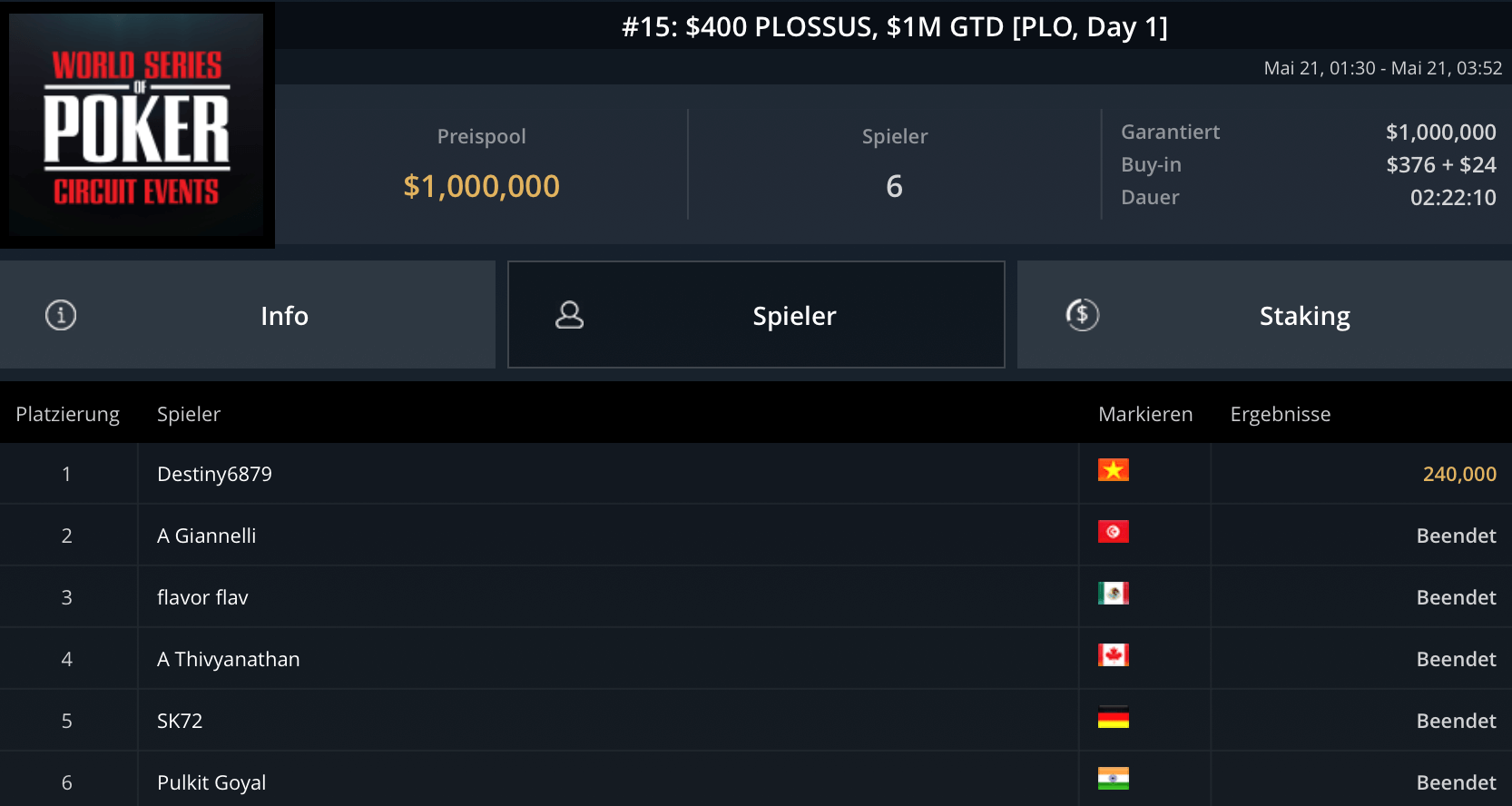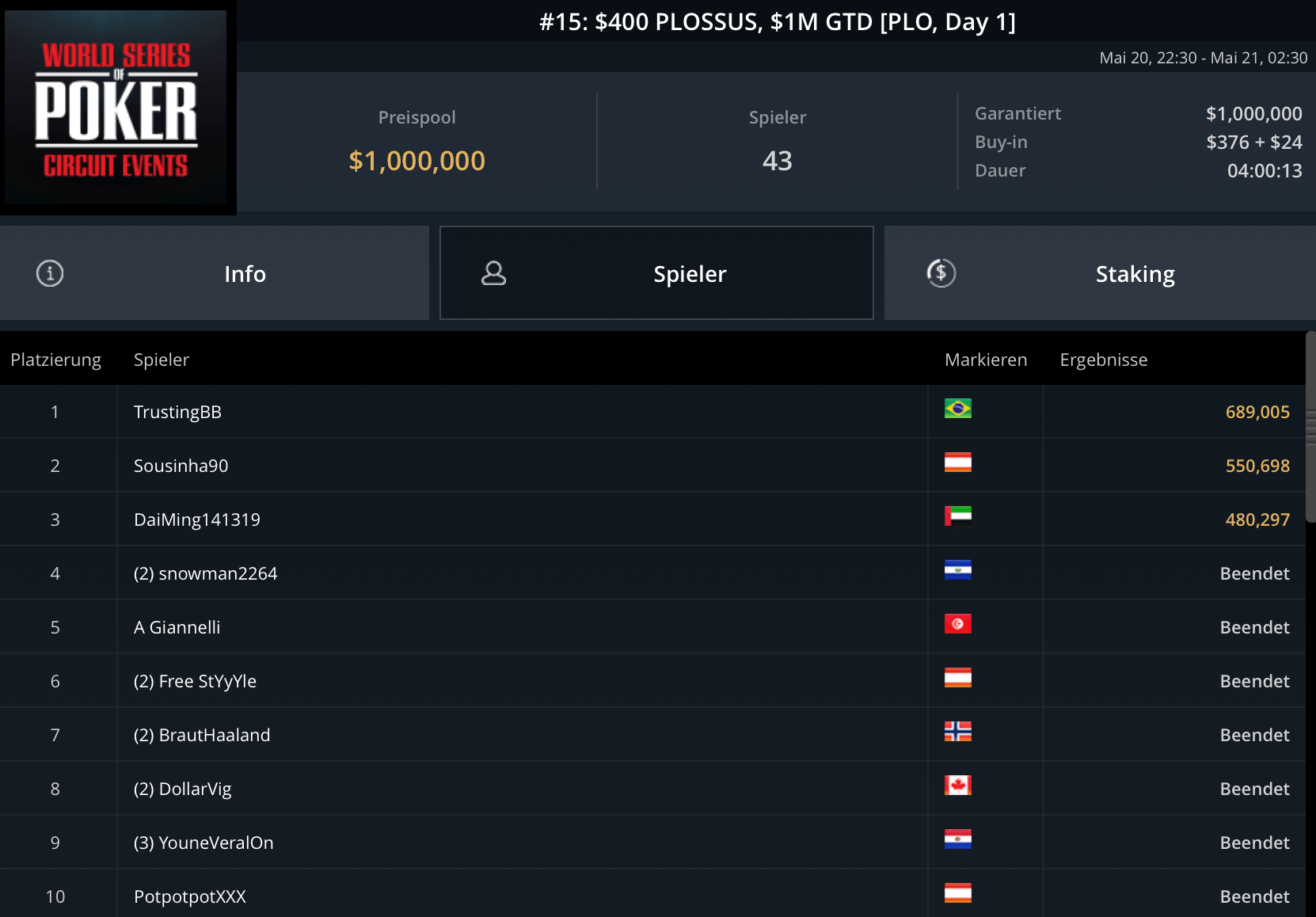 Jede Menge Action versprach gestern der World Series of Poker Circuit auf GGPoker, der eine breite Masse an Spielern zu Mid- und Highstakes-Turniere einlud – mit äußerst erfolgreicher Beteiligung der deutsch-österreichischen Pokerspieler.