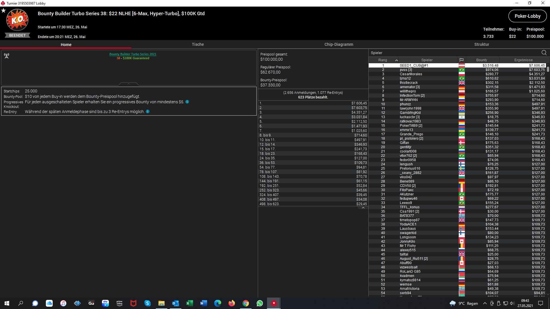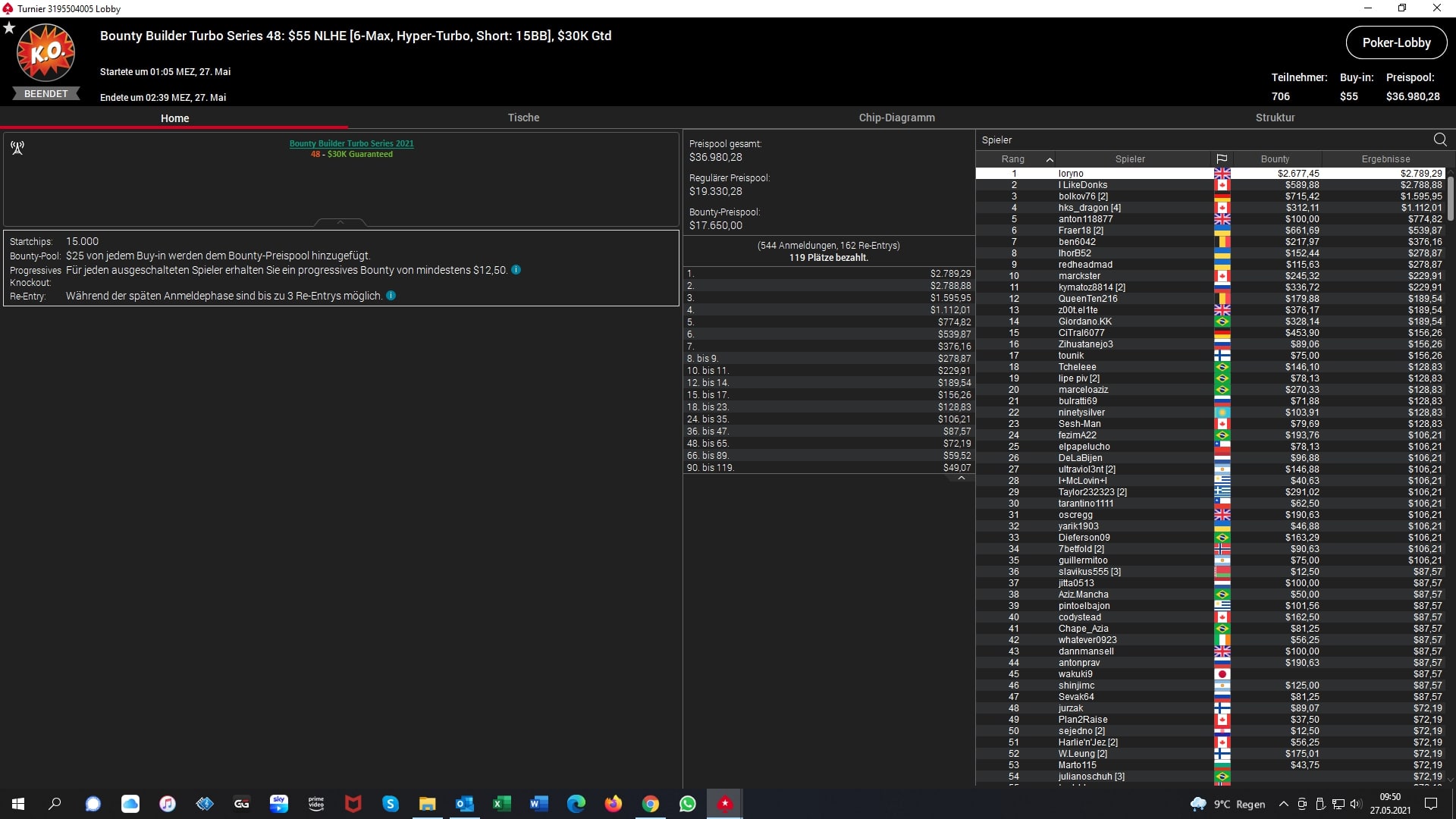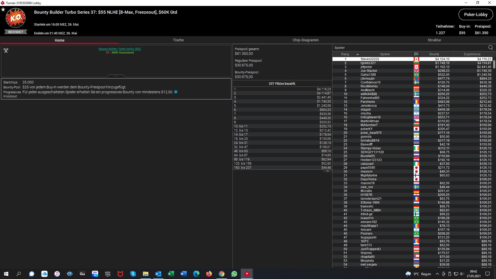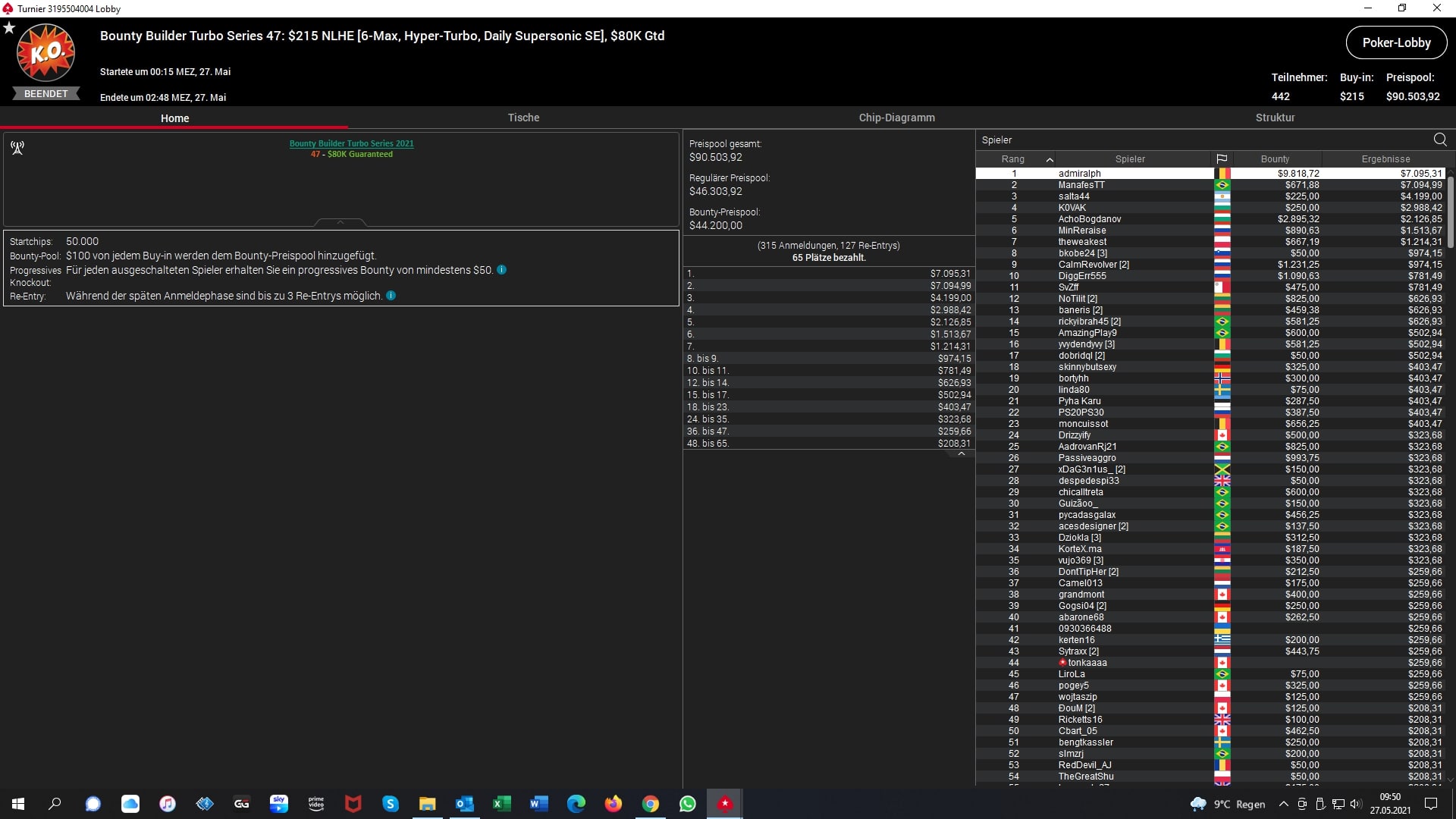 Platz 8 – #37 – $55 NLHE 8-Max Freezeout – „RicoNiniAby“ (GER) – $449 + $148 Bounties