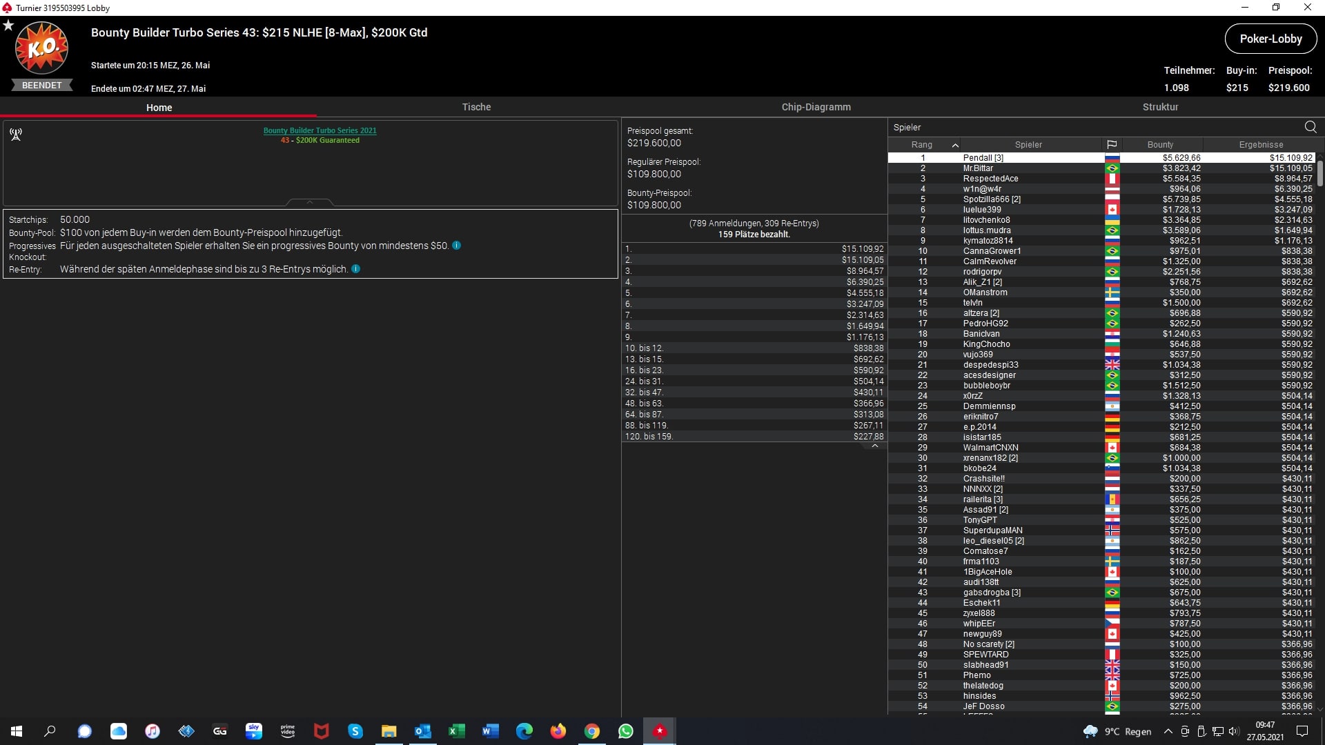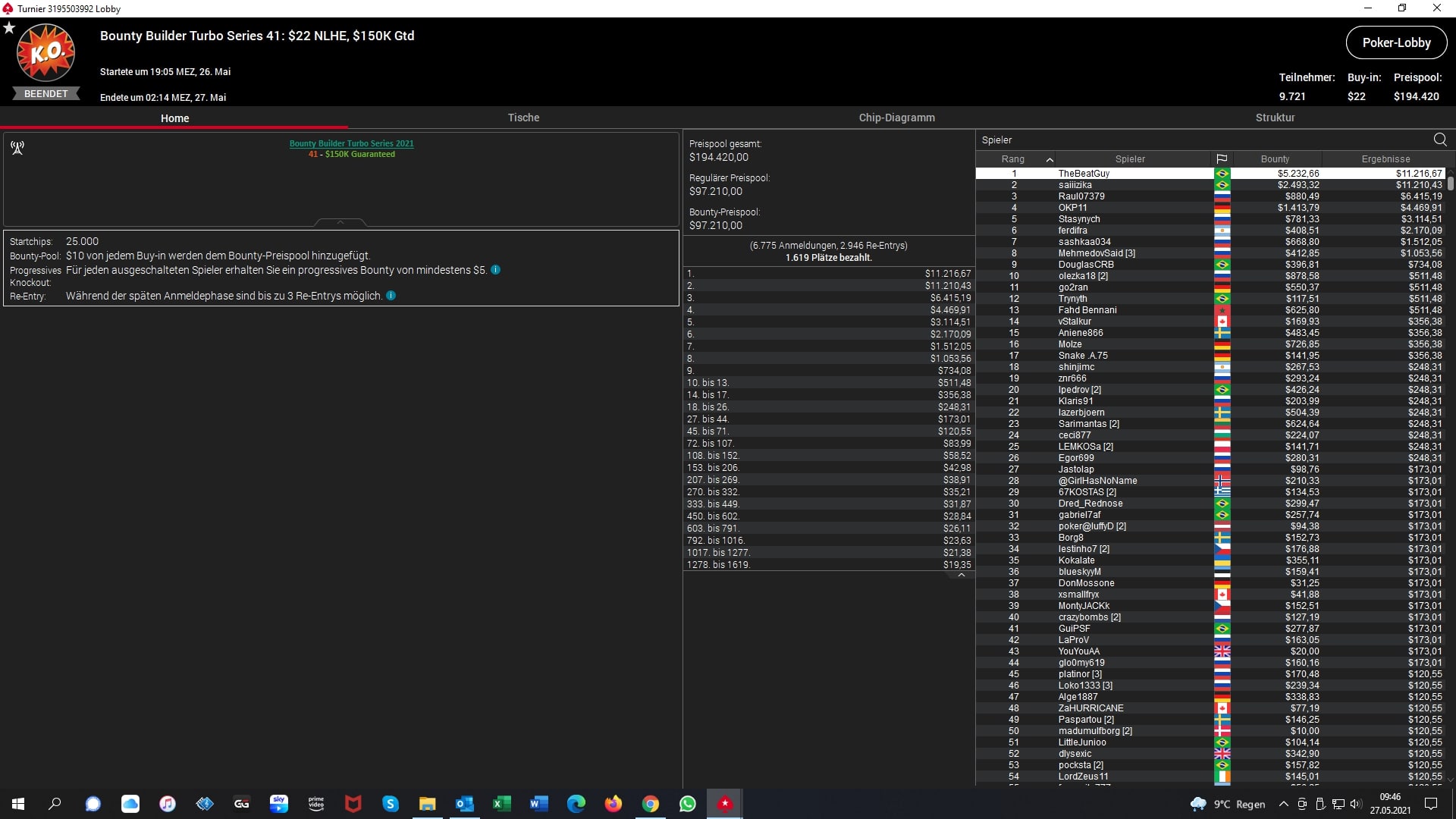 Platz 9 – #45 – $109 8-Max Daily Cooldown – „MaxiTaxi83“ (GER) – $793 + $2.107 Bounties