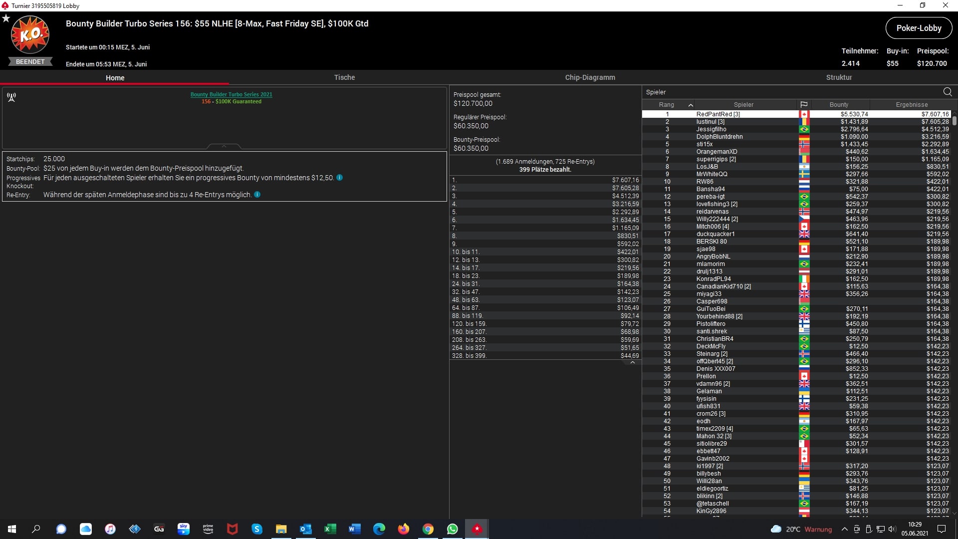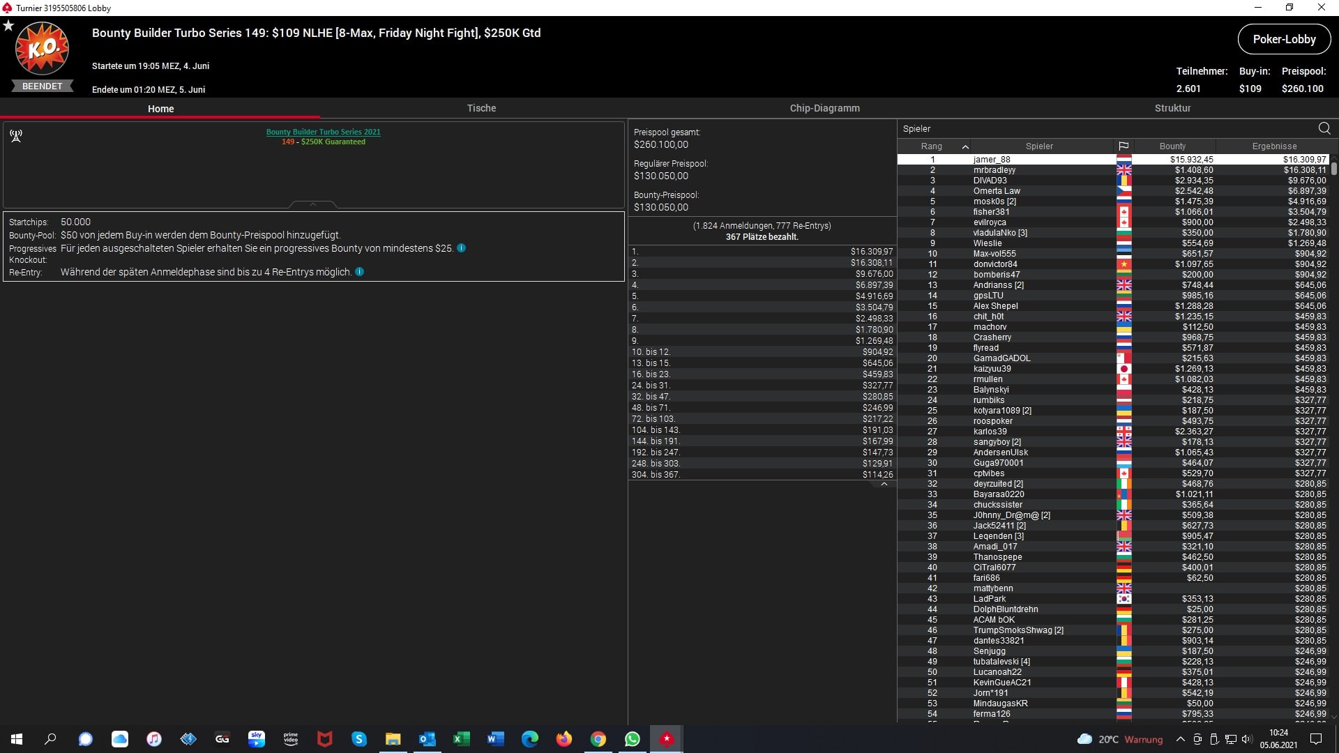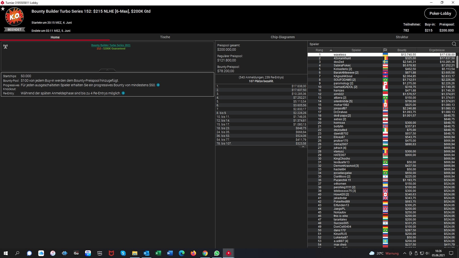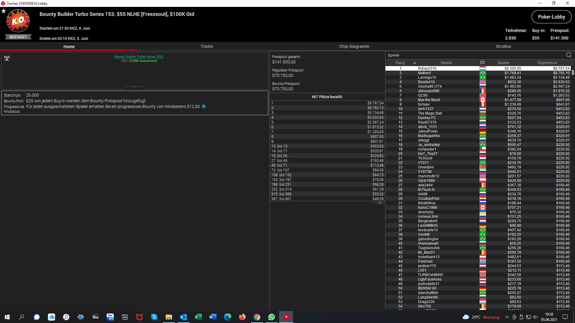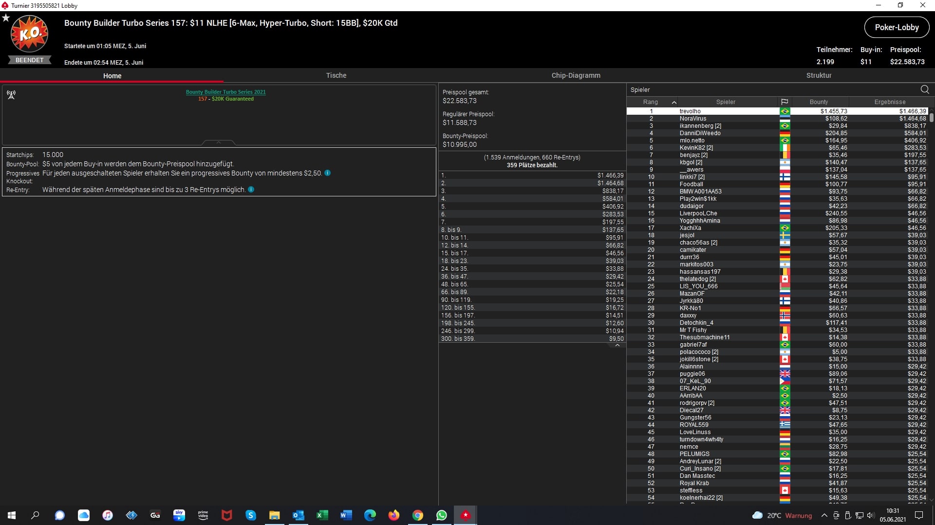 Platz 6 – #146 – $55 NLHE Hyper Turbo – „nuri25“ (GER) – $1.078 + $165 Bounties