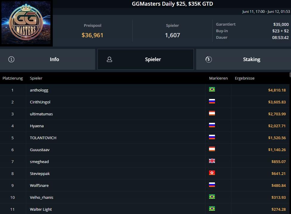 Platz 3 – $25 GGMasters Fast – „jama099“ (GER) – $1.569