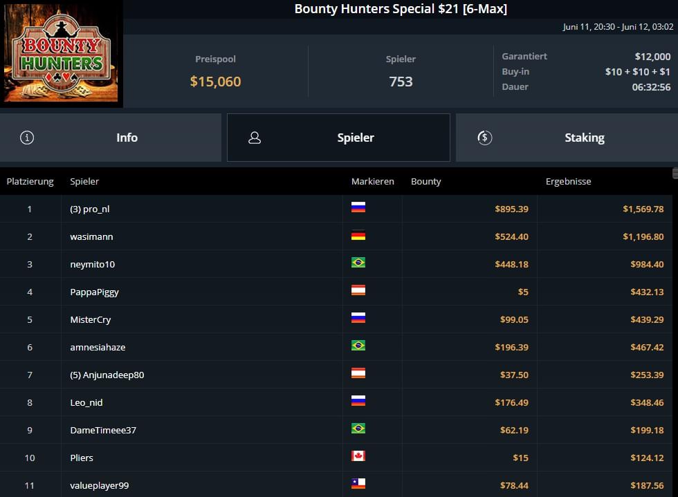 Platz 2 – $21 Bounty Hunters Special – „wasimann“ (GER) – $1.196 inkl. $524 Bounties