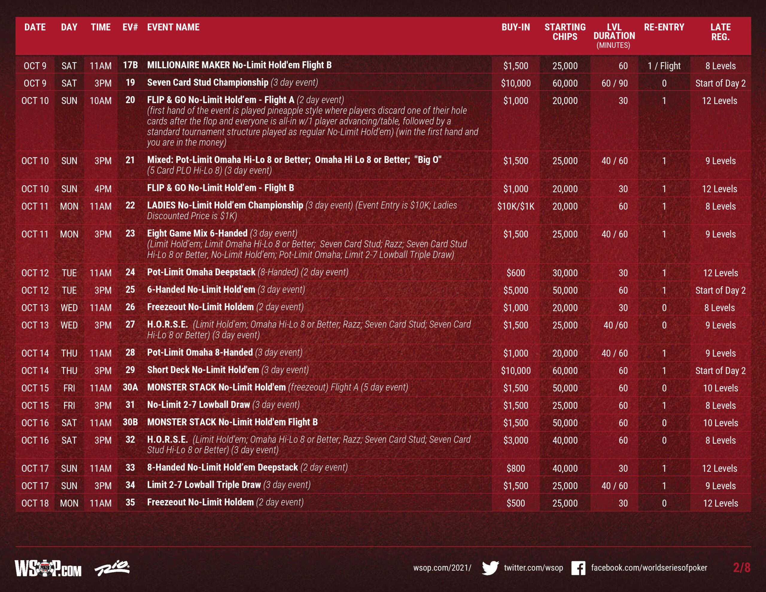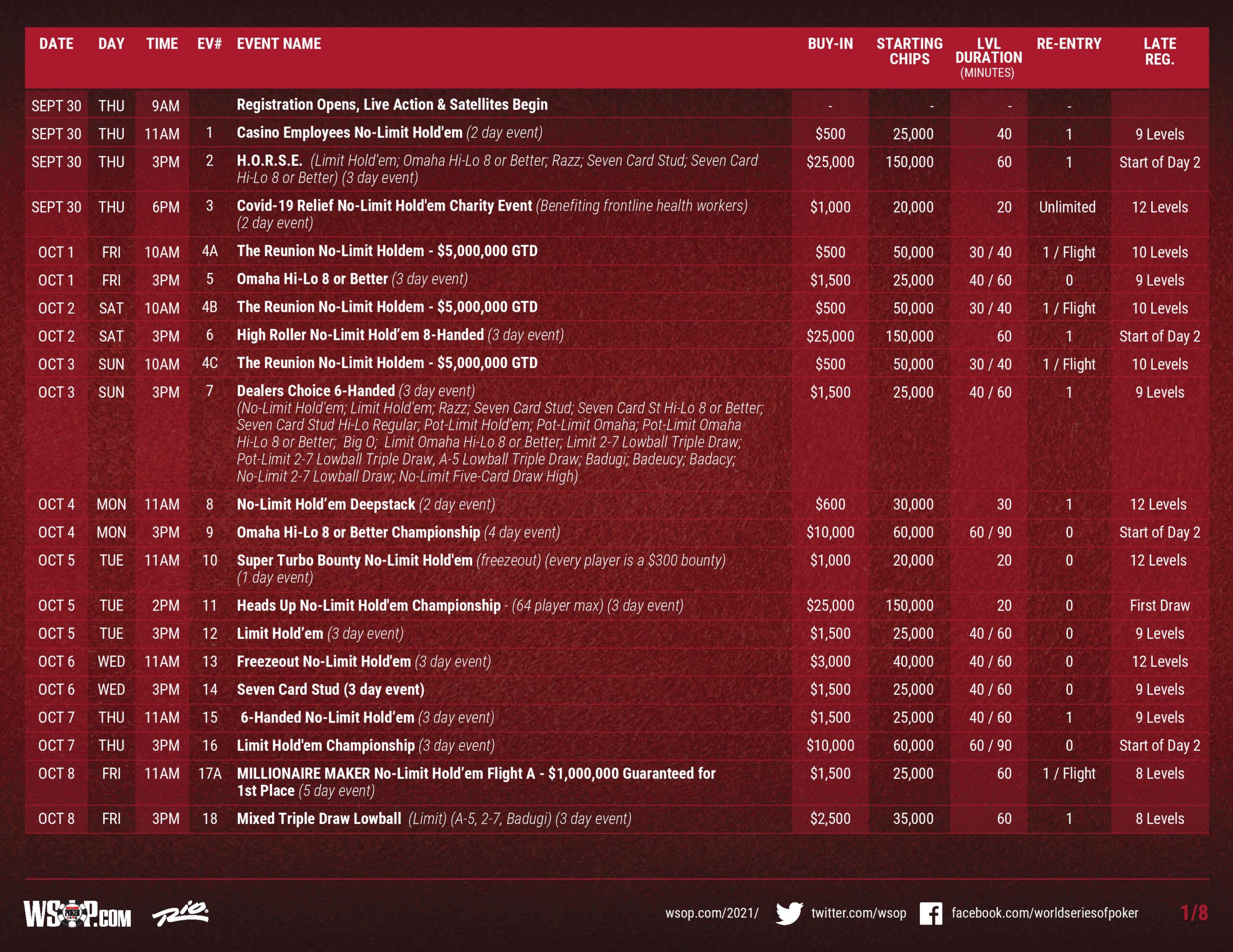 Hier ist der vollständige WSOP 2021 Turnierplan: