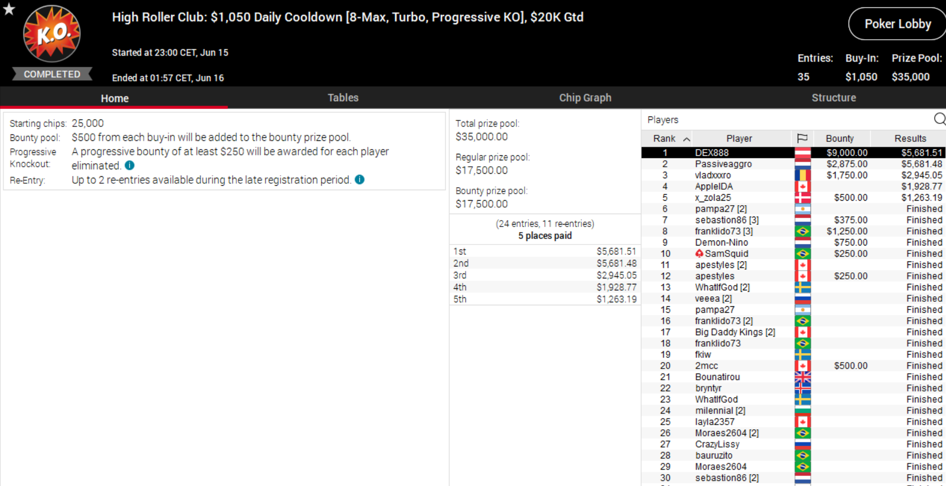 Als Belohnung gab es mit Bountys über $15.000 Preisgeld – und das in knapp drei Stunden Spielzeit.