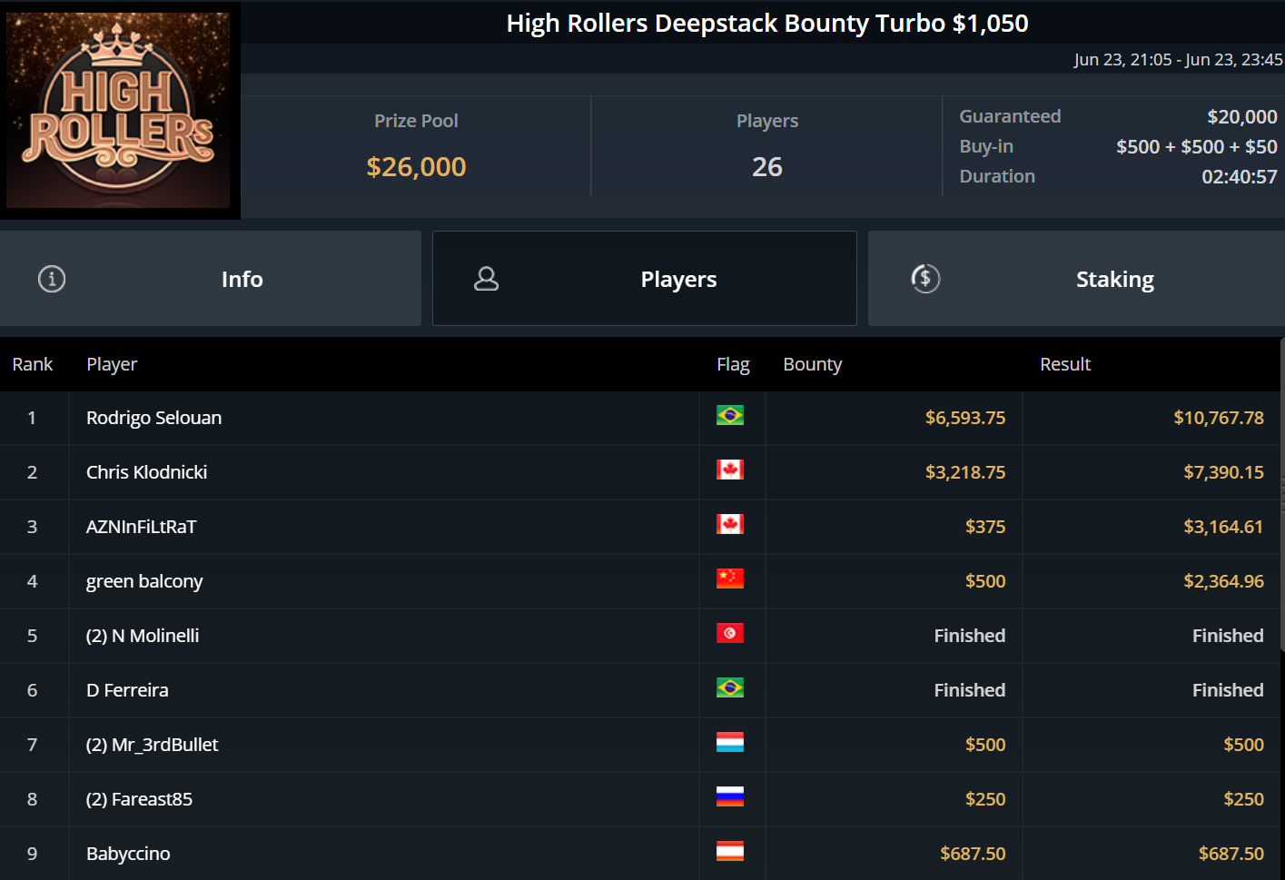 Letztlich musste er sich dem Esten „RukKuRuku“ geschlagen geben, durfte sich aber über weitere gut $5.700 freuen.