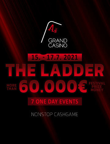 Vom 15. bis 17. Juli bietet das Grand Casino Aš unter dem Motto „The Ladder““ an drei Tagen sieben Eintagesturniere mit einer Garantie von €60.000 an.