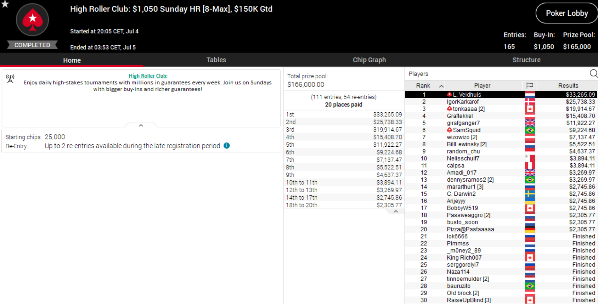Lex Veldhuis streamte sich beim $1.050 Sunday High Roller zum Sieg und durfte sich nicht nur über ein großes Publikum, sondern mehr als $33.000 Preisgeld freuen.