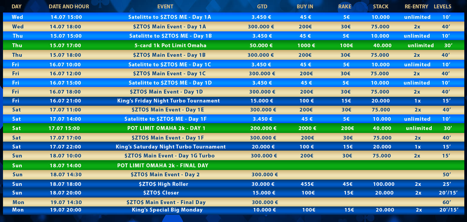 Mit dem King’s Special Big Monday fand am Montag zudem noch ein Side Event statt. Die maximal verfügbaren 117 Entries waren schnell vergriffen, sodass €11.115 an Preisgeldern ausgespielt wurden. Nach einem Heads-up-Deal ging der Sieg samt €2.502 an Martin Greizinger aus Tschechien, Platz zwei für €2.501 belegte Arash Karimkhanzand aus Deutschland.