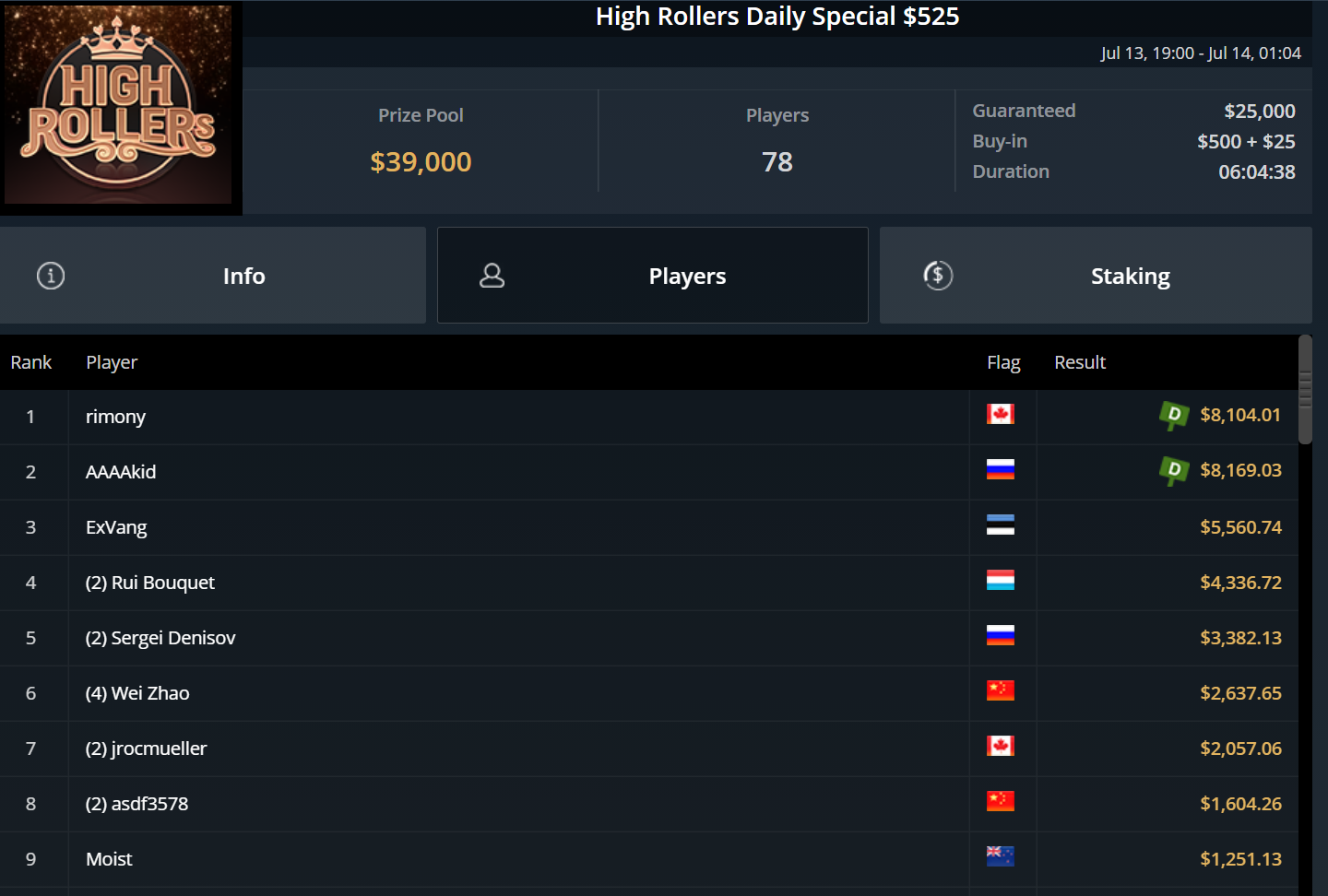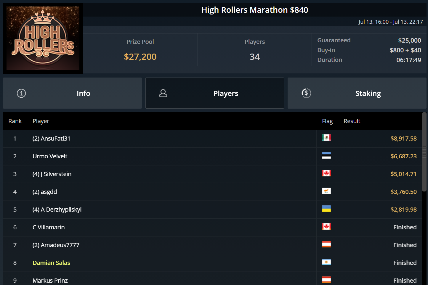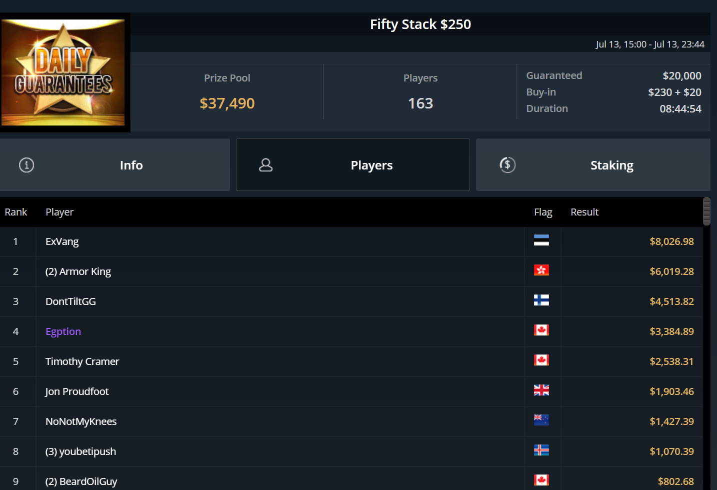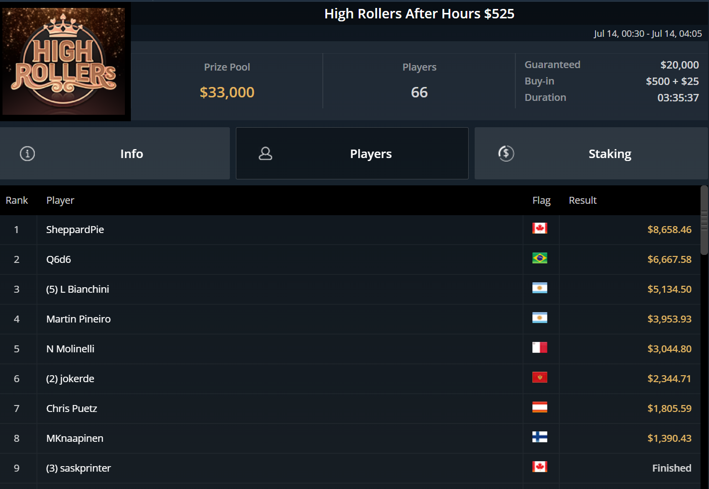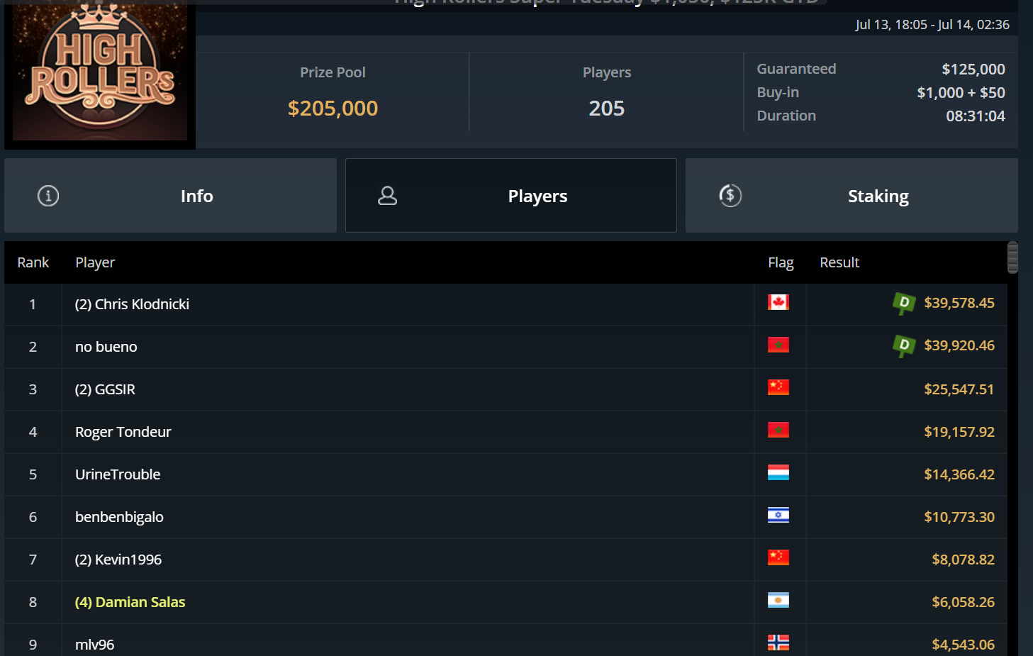 Chris Pütz konnte sich immerhin zu später Stunde mit Platz 7 beim $525 High Rollers After Hours noch $1.800 sichern und auch „URJH19“ kam beim $215 Last Call Bounty Hyper auf den letzten Drücker zu einem Cash. Für Platz 3 gab es ebenfalls rund $1.800.