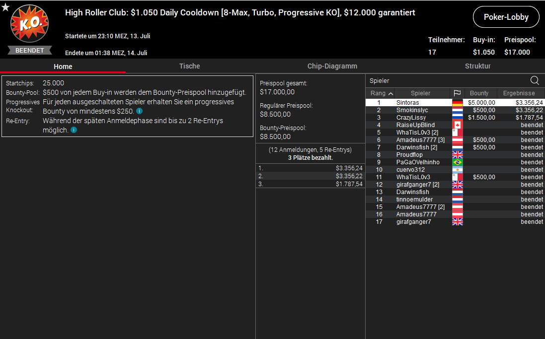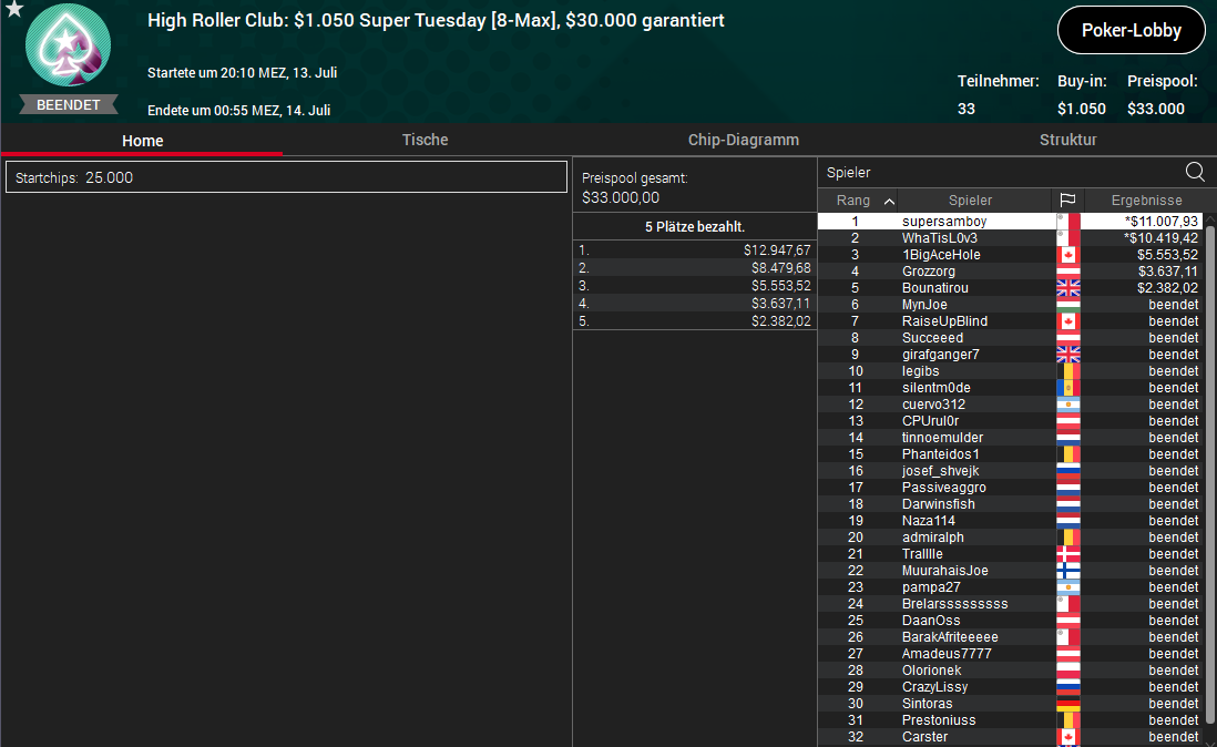 Auf PokerStars wurden gestern im High Roller Club fünf Turniere ausgetragen, und dabei gelang einem deutschen Spieler Sensationelles.