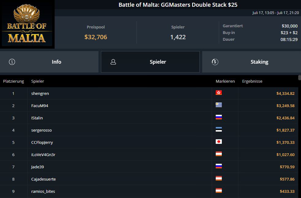 Am Samstag ging auf GGPoker der siebte Spieltag beim Battle of Malta (BOM) Online Festival über die Bühne und diesmal spielten die Pokerspieler aus dem deutschsprachigen Raum nur die zweite Geige.
