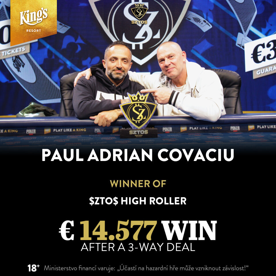 Einen Deal gab es derweil beim €550 $ZTO$ High Roller. Paul Covaciu aus Rumänien, der Litauer SVARAS und Stefan Zaugg aus der Schweiz einigten sich auf die brüderliche Teilung des Preisgeldes und kassierten jeweils €14.577.