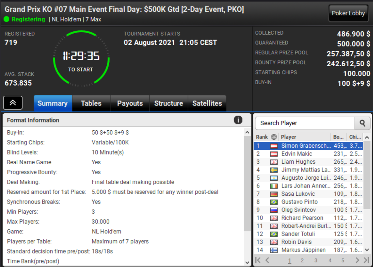 Noch sind nicht alle Starttage des $109 Main Event beim Grand Prix KO auf partypoker absolviert, aber 719 Spieler sind bereits für das große Finale am heutigen Montag qualifiziert.
