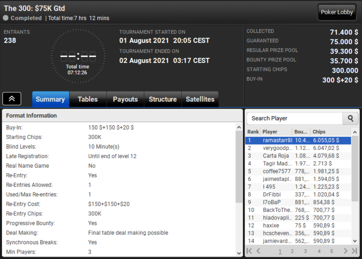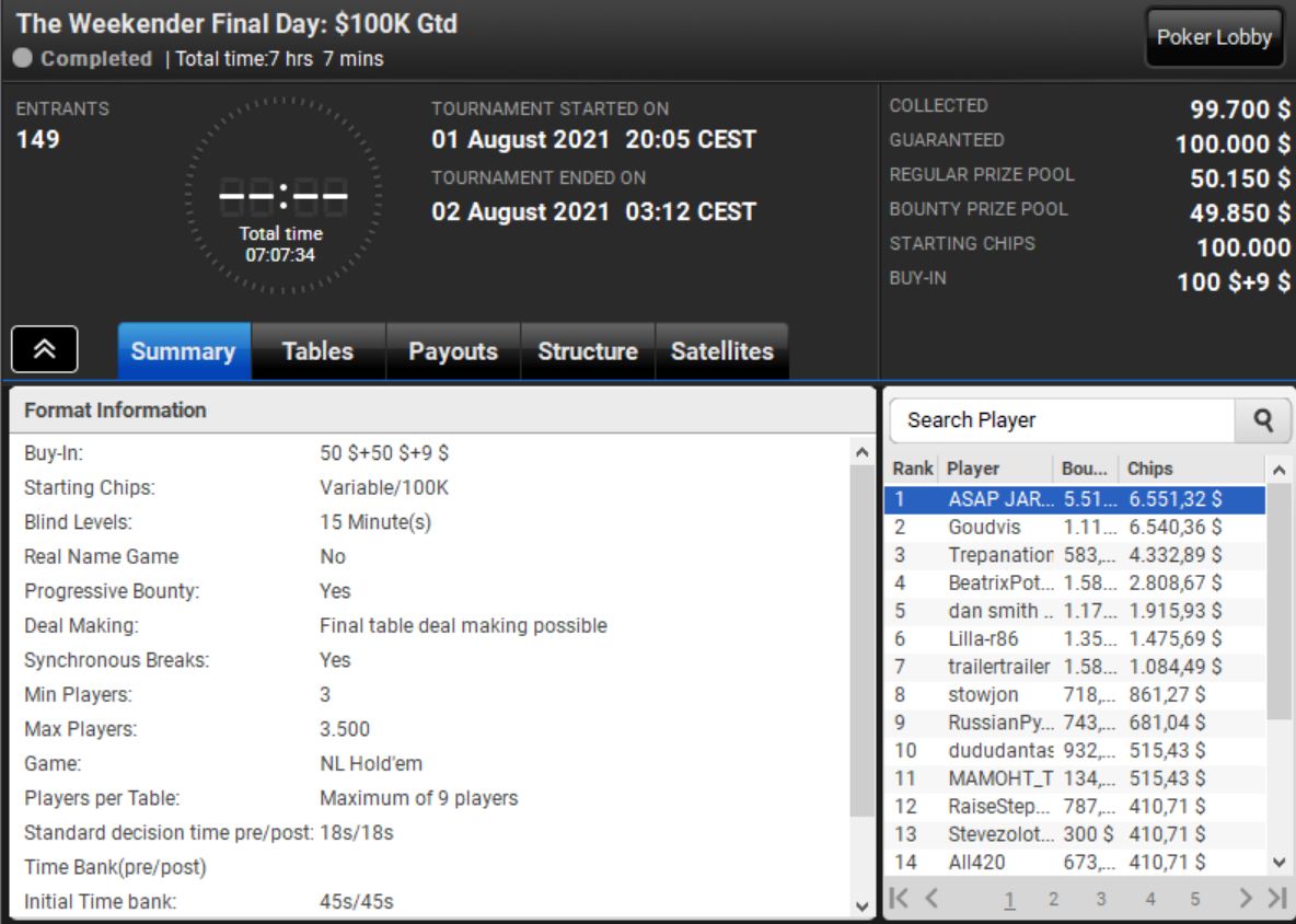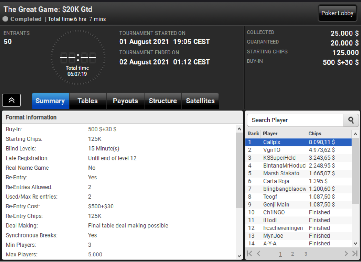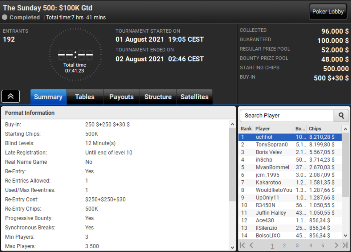 Gestern wurden auch wieder die klassischen Sonntagsturniere wie das Sunday 500 oder der Weekender ausgetragen.