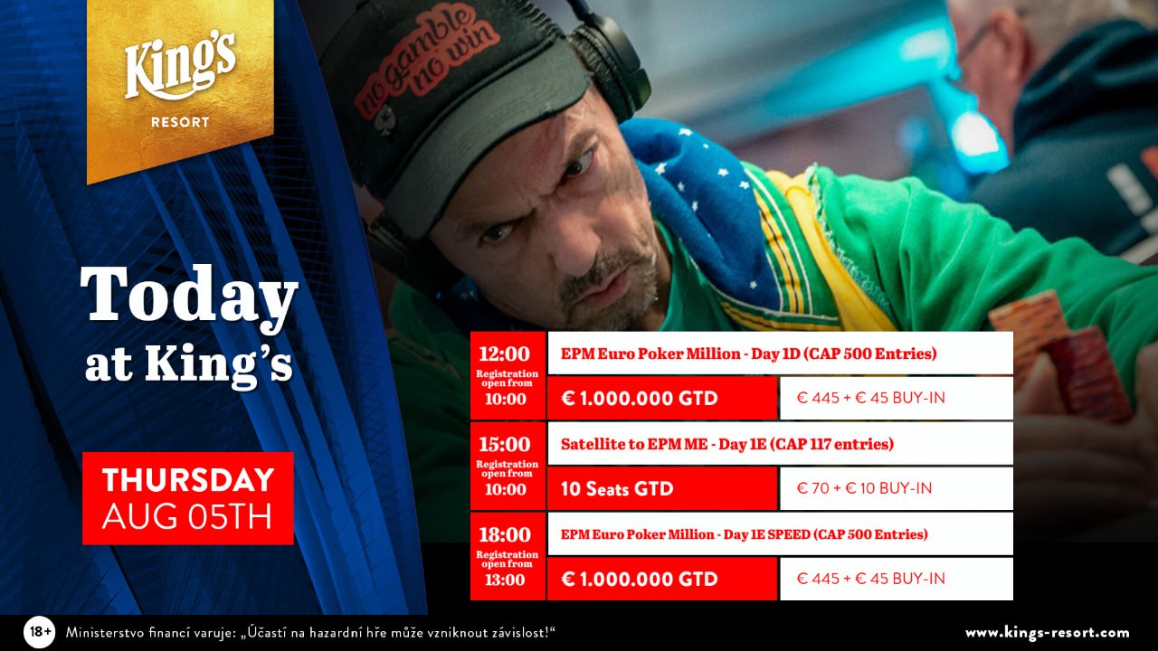 Heute geht es bei der Euro Poker Million nahtlos weiter. Um 12 Uhr wird Tag 1D gestartet, und nach einem Satellite um 15 Uhr wird dann noch um 18 Uhr Starttag 1E im Speedformat ausgetragen.