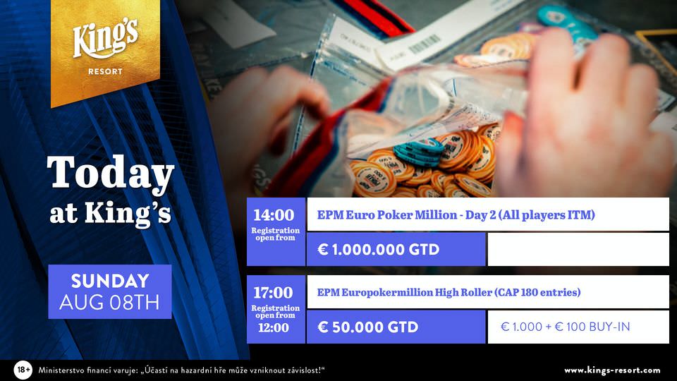 Am Sonntag geht es im Kings um 14:00 Uhr mit dem Tag 2 des €445+€45 Euro Poker Million Main Events weiter.