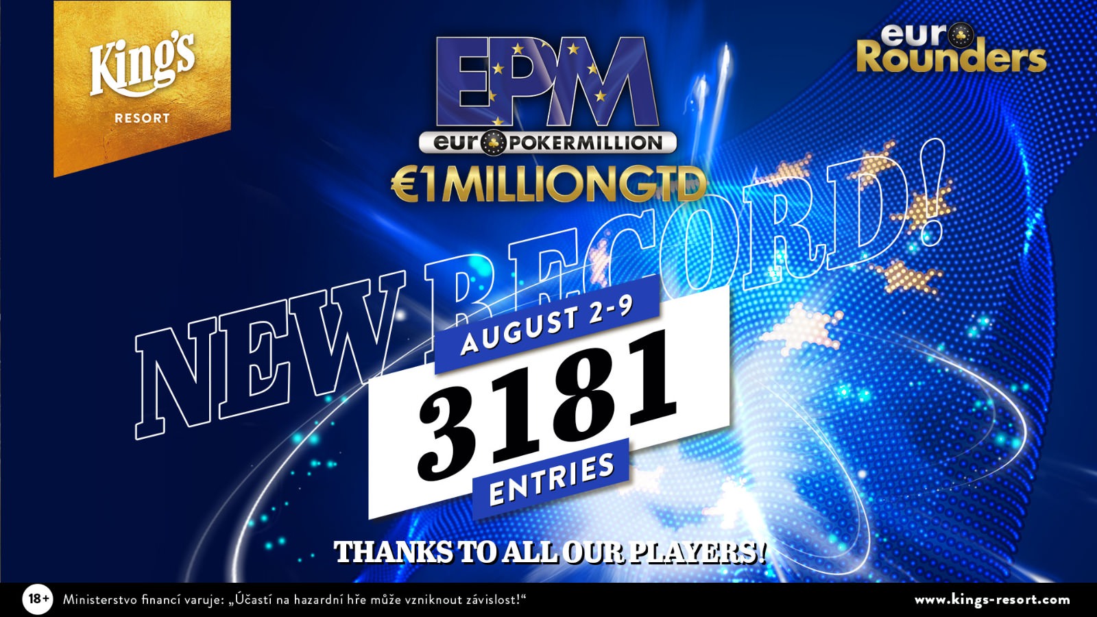 Mit sensationellen 3.181 Entrys ist die Euro Poker Million im King’s Resort ein voller Erfolg geworden und es geht um ein Preisgeld von über €1,3 Millionen.