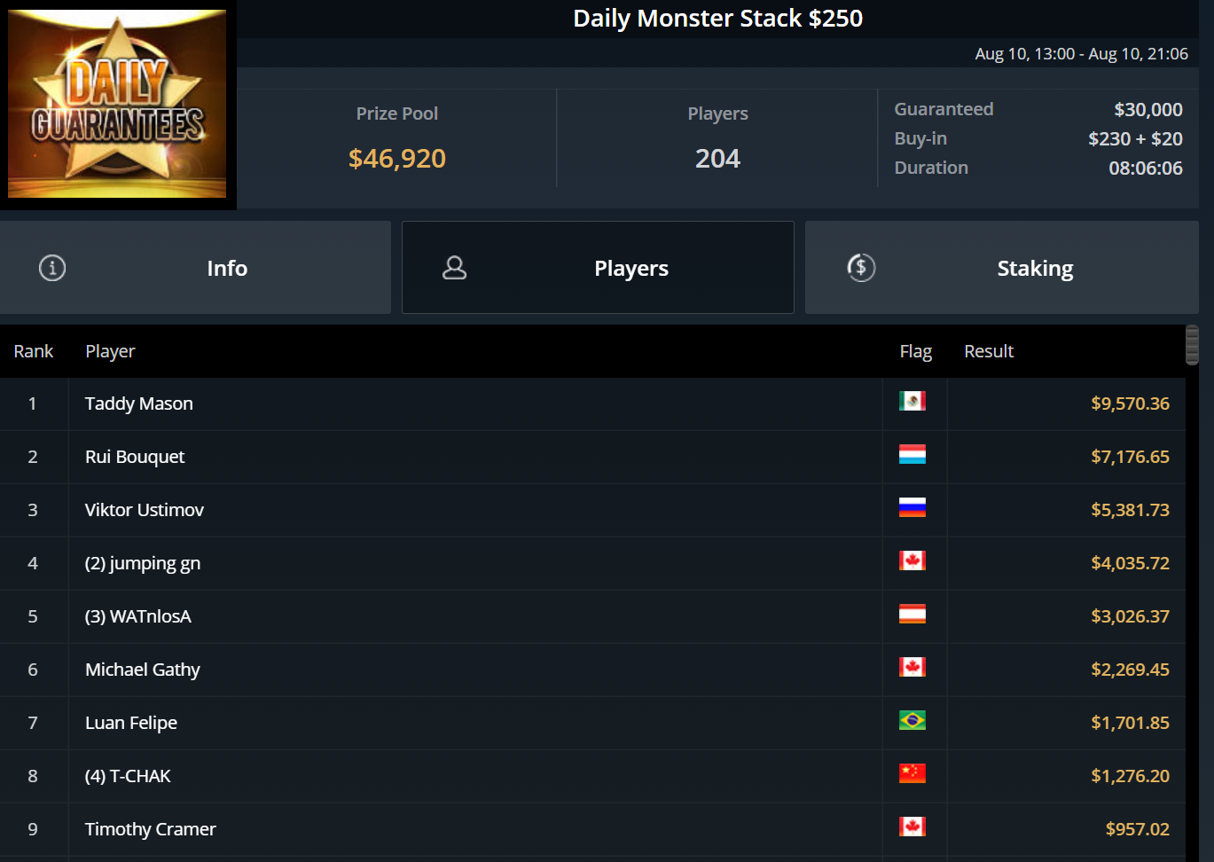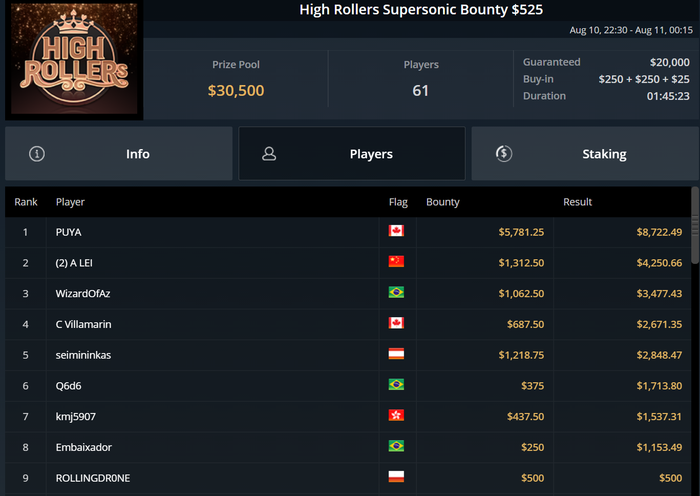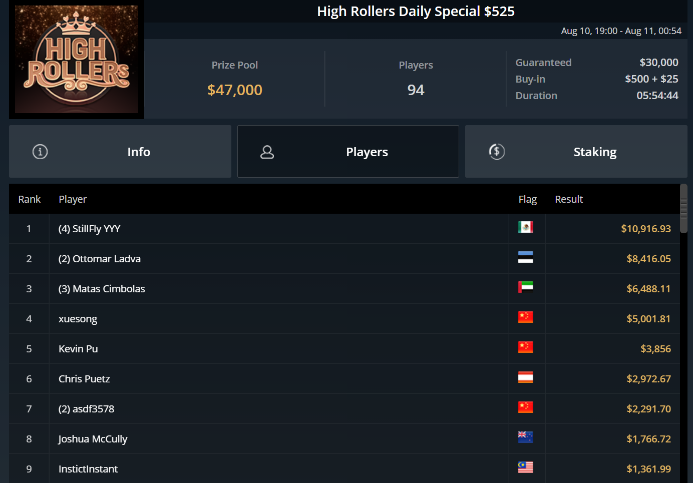 Auch Chris Pütz machte mit Platz 6 beim $525 High Rollers Daily Special auf sich aufmerksam, während der Sieger beim $210 Bounty Hunters Special „Mucurinha“ aus Brasilien fälschlicherweise als Österreicher geführt.