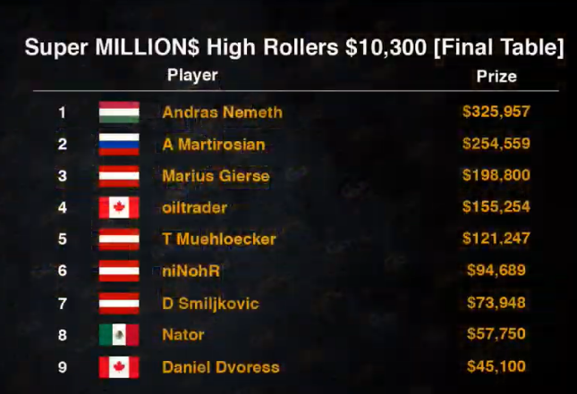 Gleich vier deutschsprachige Spieler standen im Finale der $10.300 Super MILLION$ und Marius Gierse hatte als Führender beste Aussichten auf den Turniersieg.