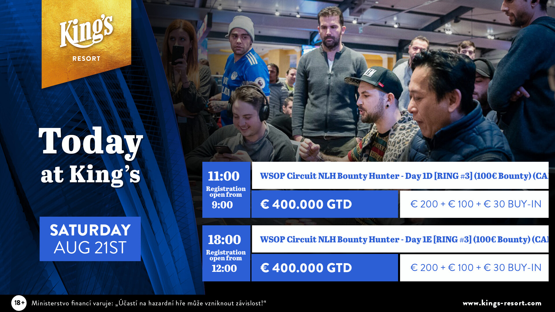 Im King’s Resort Rozvadov wurde am Freitag im Rahmen des World Series of Poker Circuit Festivals ein weiteres €100+€15 King’s Night Turbo Side Event mit €10.000 garantiert ausgespielt.