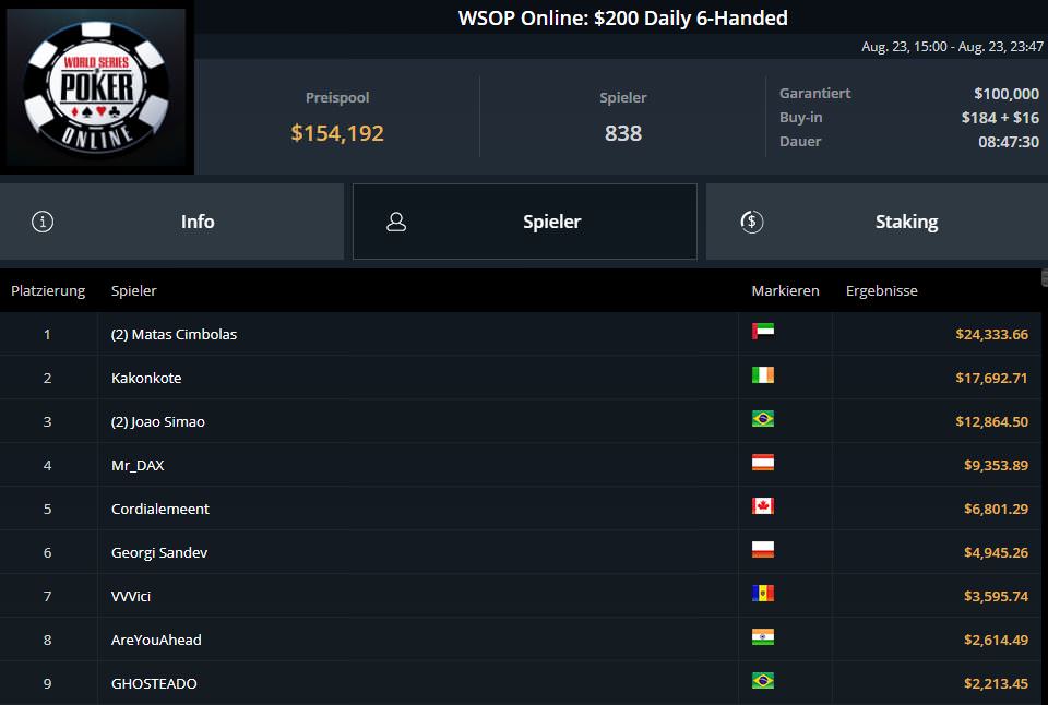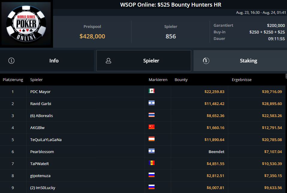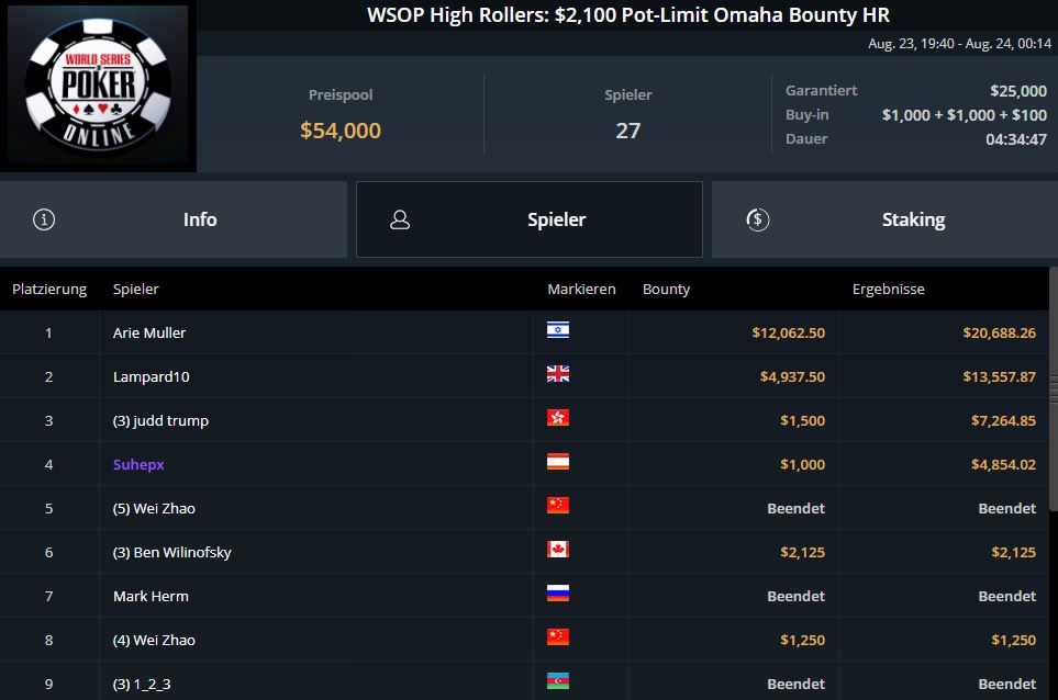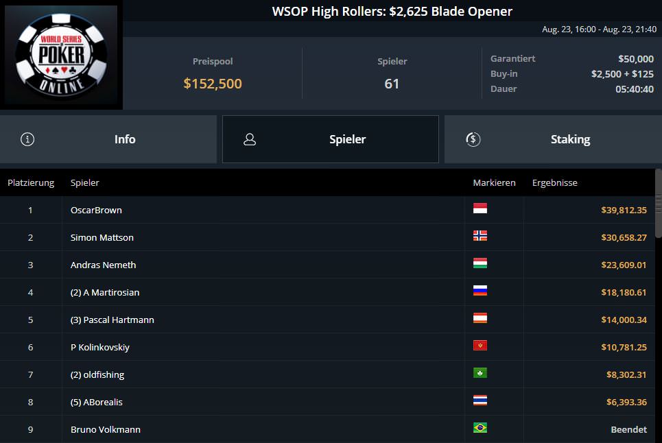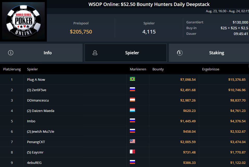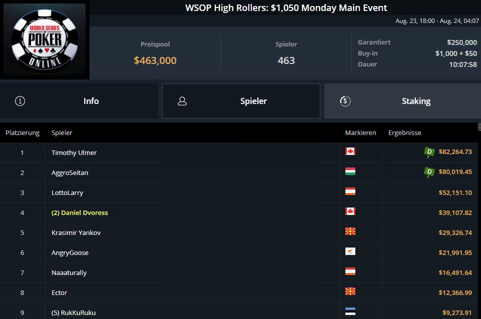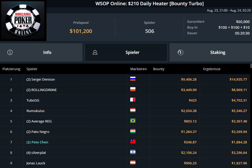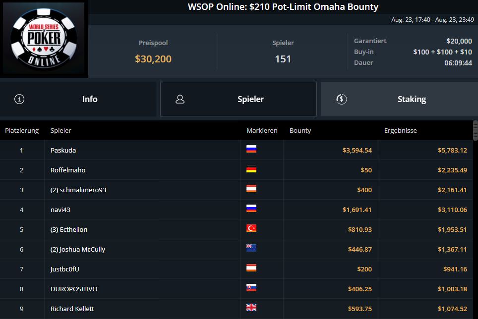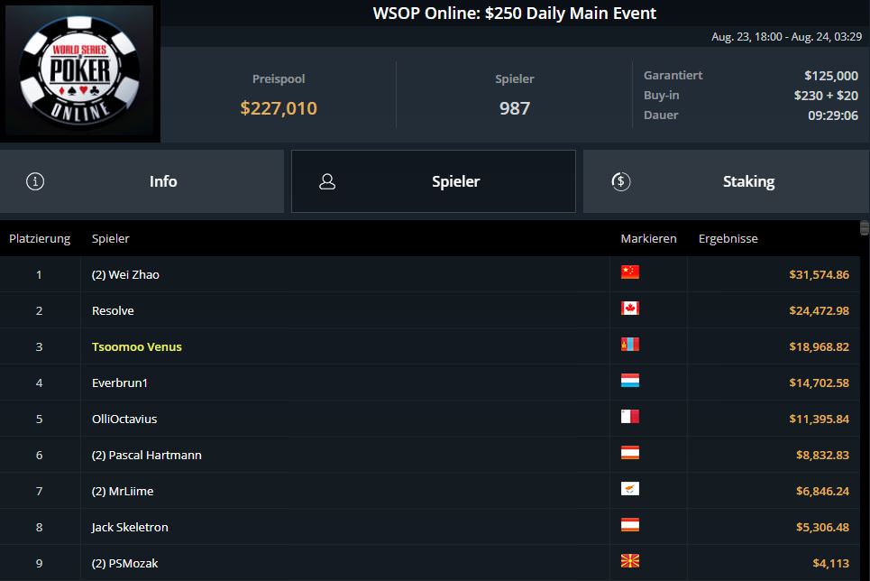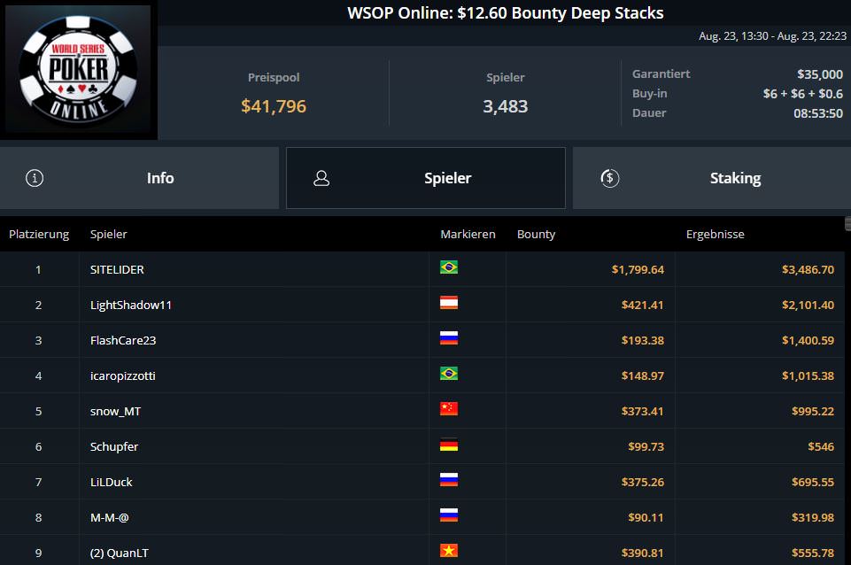 Ganz schlecht verlief der entscheidende Spieltag für Fabian lord0f0513 Schmidt. Nach Platz sieben am ersten Spieltag, musste er sich letztlich mit Platz 18 und $9.382,80 begnügen.