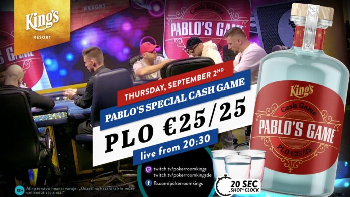 Am Donnerstag gibt es ab 20:30 Uhr die zweite Session von „Pablo’s Game“, live aus dem King’s Resort Rozvadov. Gespielt wird Pot Limit Omaha mit den Blinds €25/€25 und einer 20 Sekunden Shot Clock. Die Action wird 30 Minuten zeitversetzt mit Hole Cards übertragen und auf Deutsch von Stefan Hachmeister kommentiert.