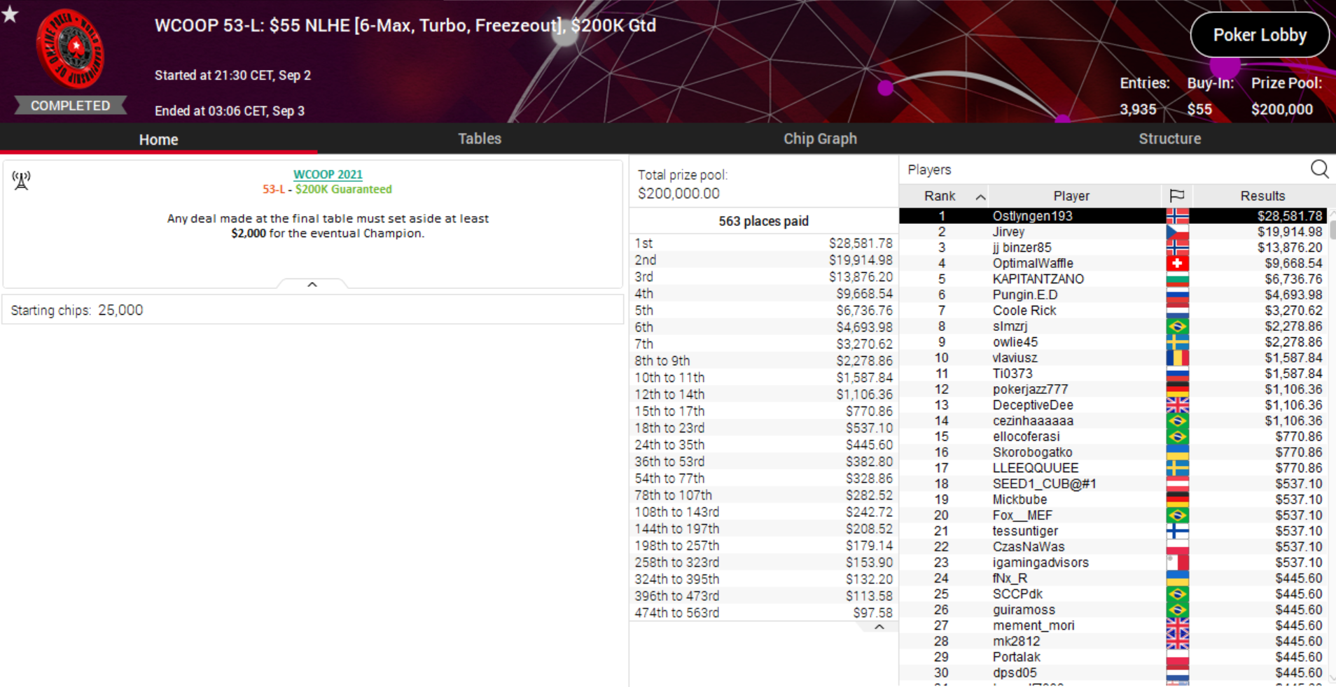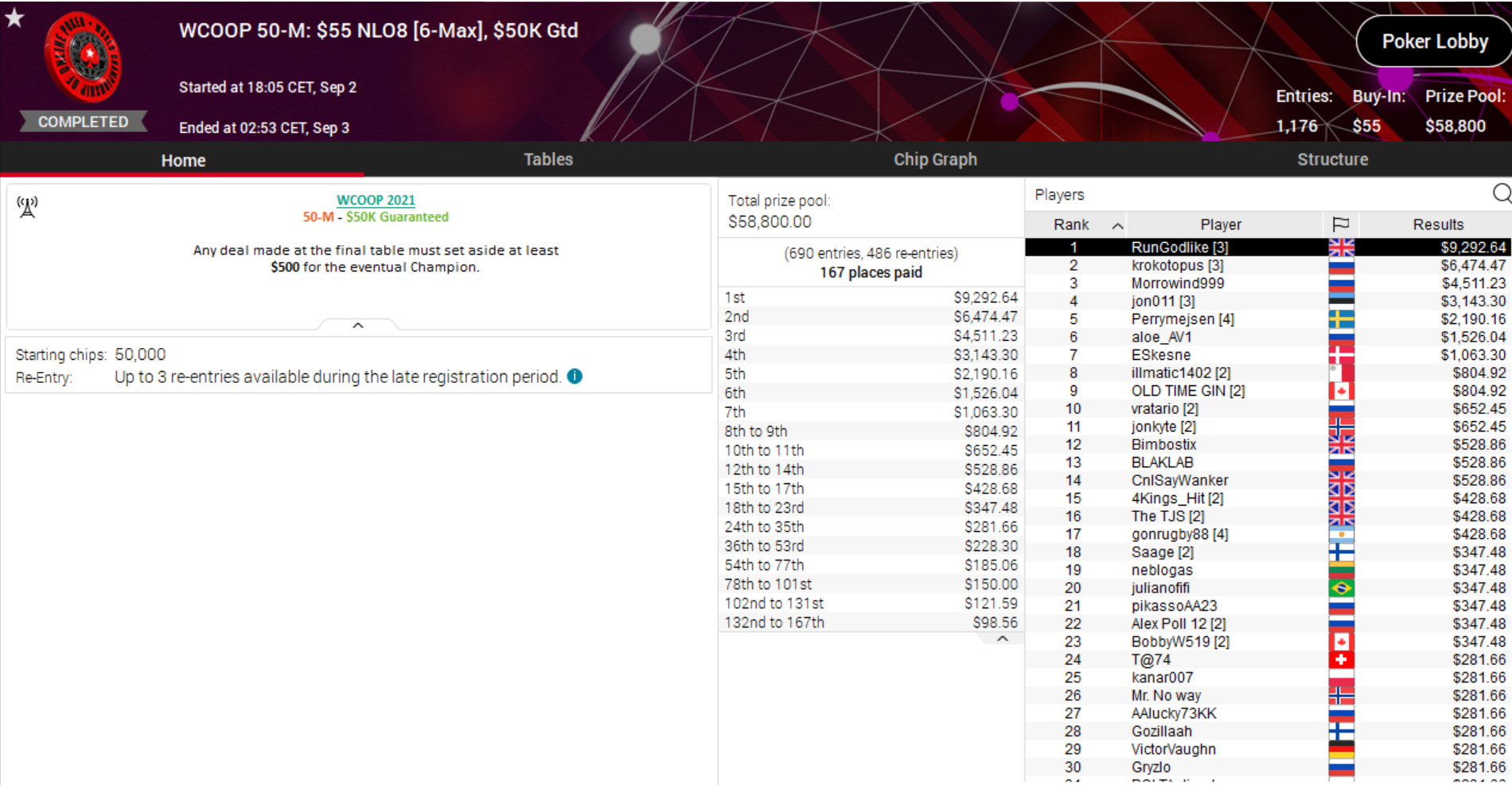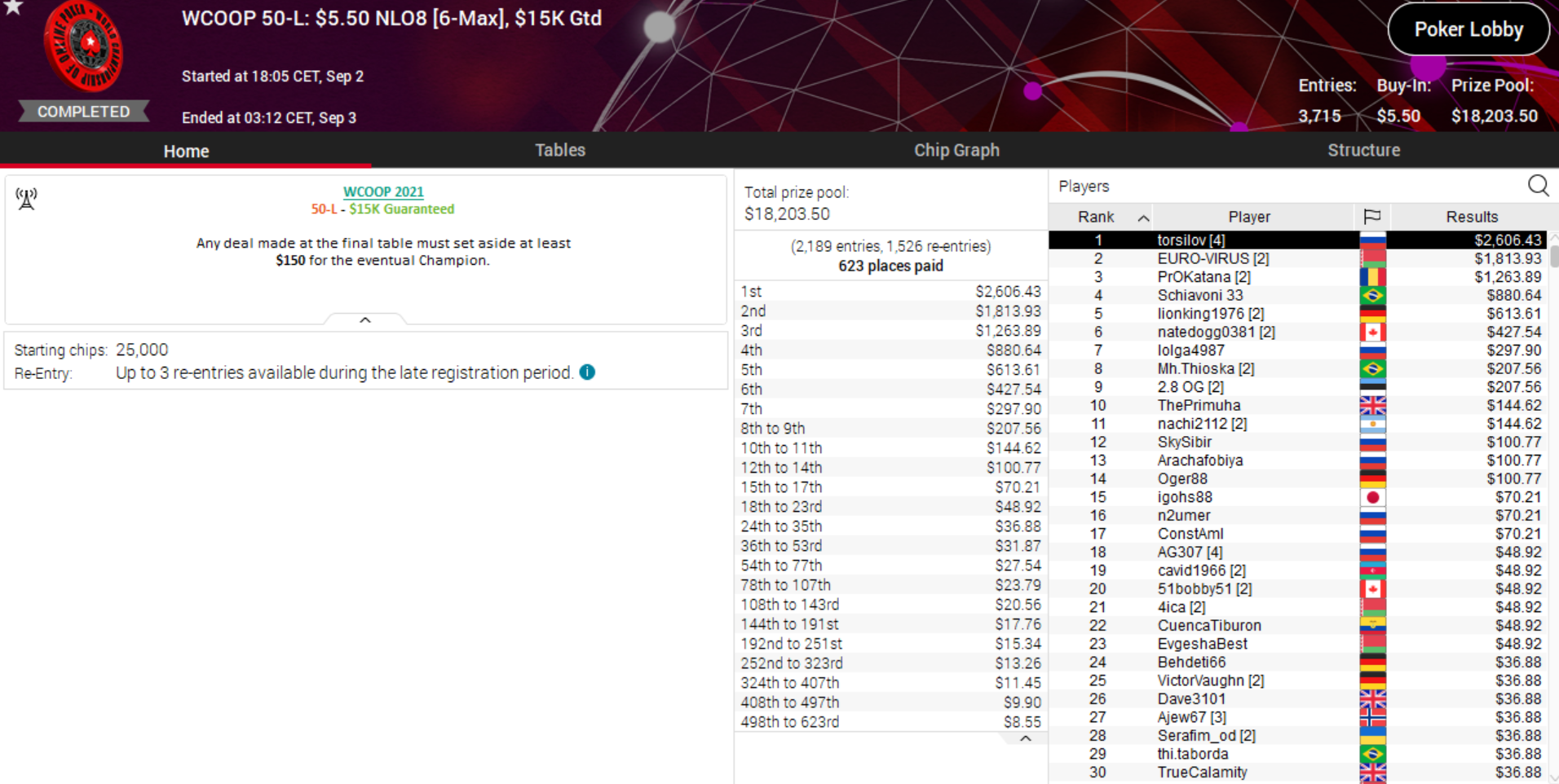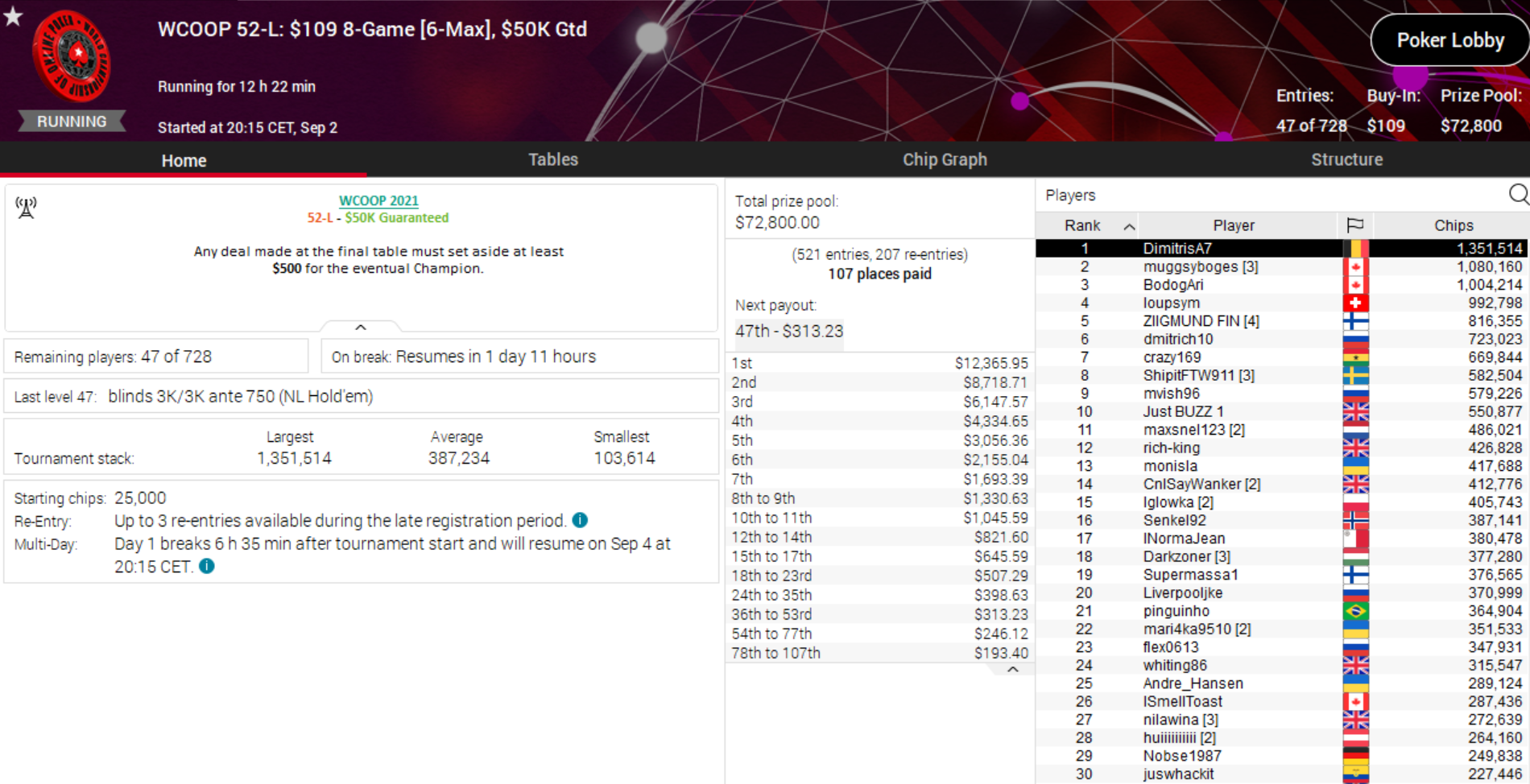 Bei der World Championship of Online Poker (WCOOP) auf PokerStars, fielen gestern insgesamt 15 Entscheidungen, außerdem wurden drei neue Events gestartet.
